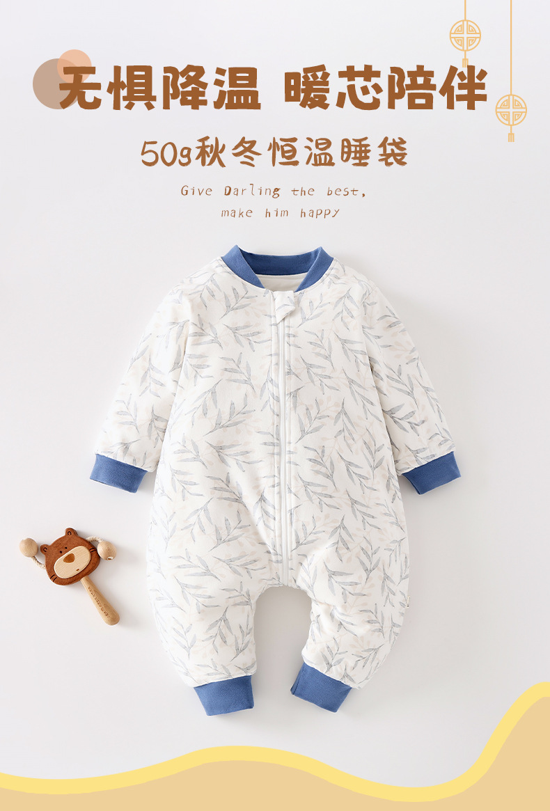 아기옷, 봄, 가을 가정복, 점프슈트, 유아 및 아동용 발차기 방지 이불, 두꺼운 누비 이불, 3지퍼 다리 분리형 침낭스토어 가기