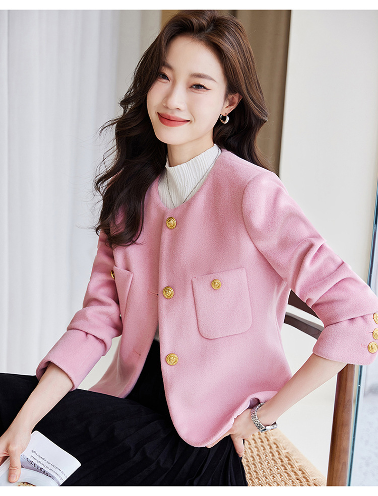 샤넬 스타일 짧은 세트 재킷 여성의 봄과 가을 새로운 패션 작은 둥근 목 캐주얼 핑크 세트 탑스토어 가기