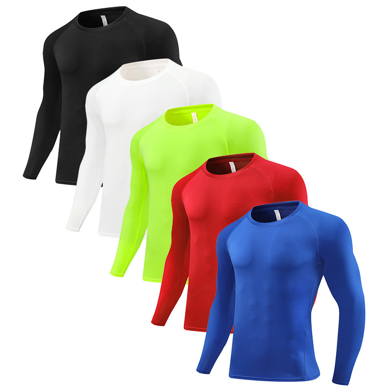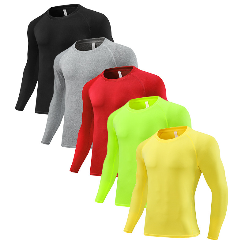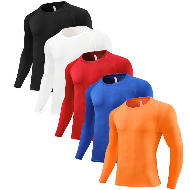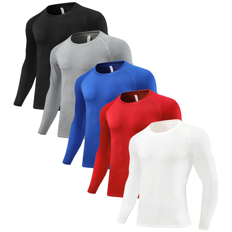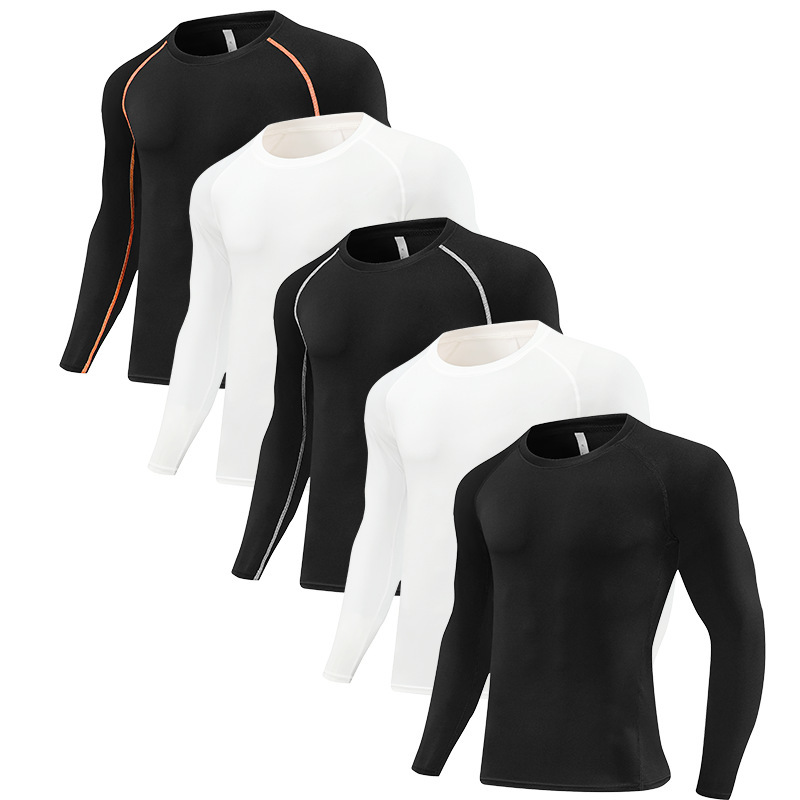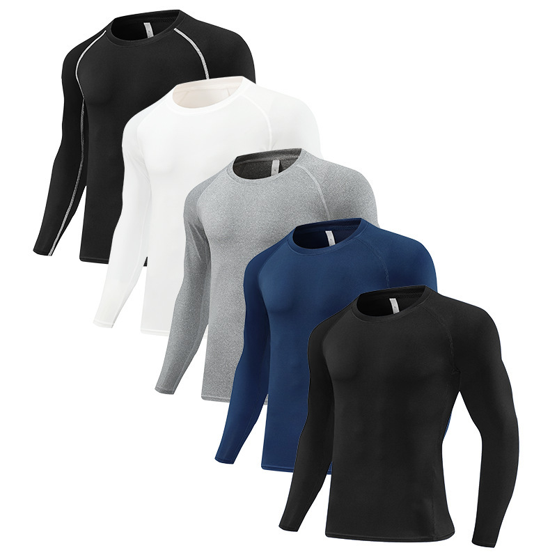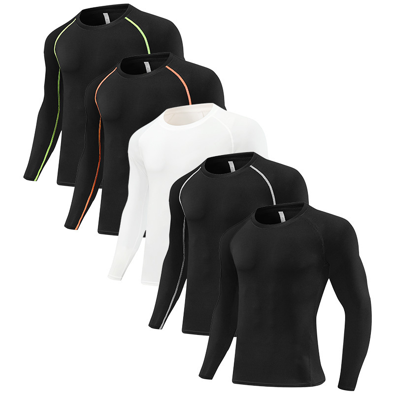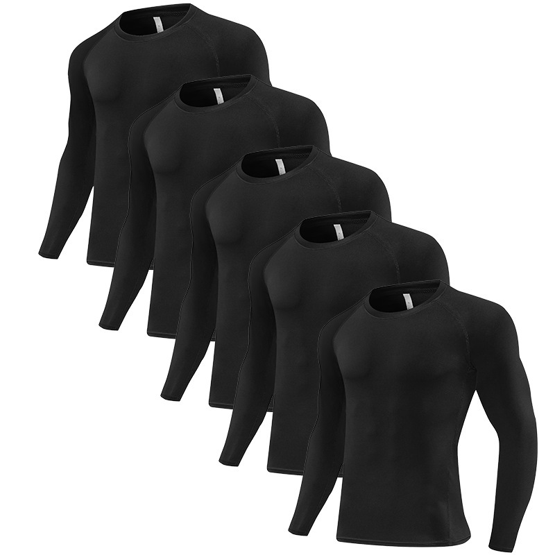 5 팩 남성 압축 빠른 건조 옷 높은 탄성 따뜻한 운동 스웨트 셔츠 긴 소매 티셔츠 피트니스 요가베이스 탑
