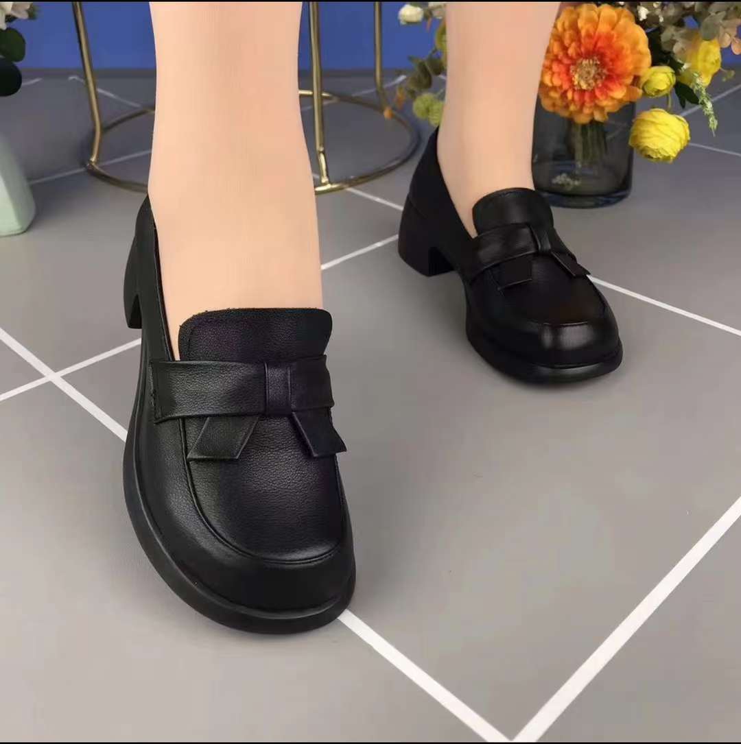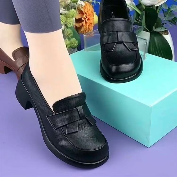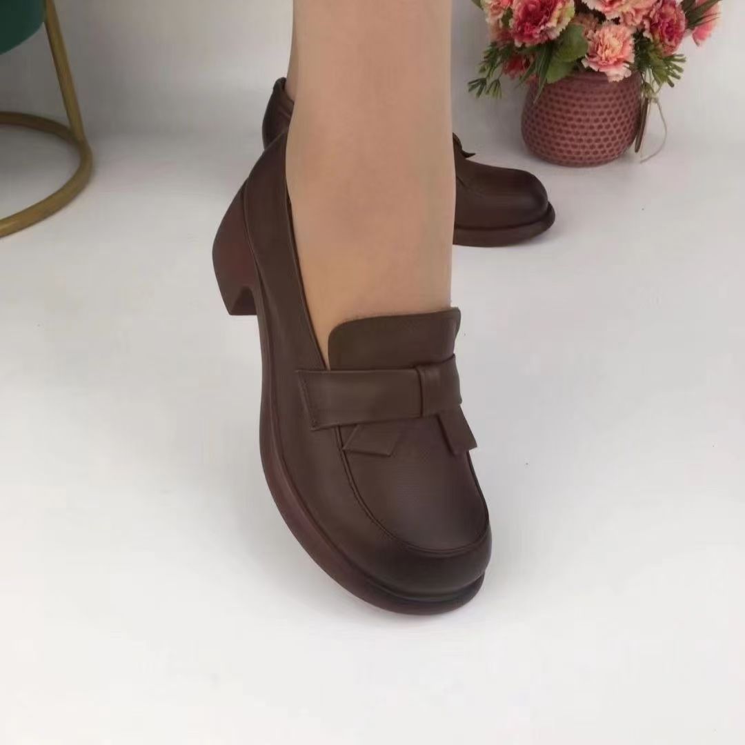 청키 힐 얕은 입 어머니 신발 부드러운 가죽 활 로퍼 여성 신발 흔들 신발 2024 봄과 가을 대외 무역 도매 싱글 신발스토어 가기
