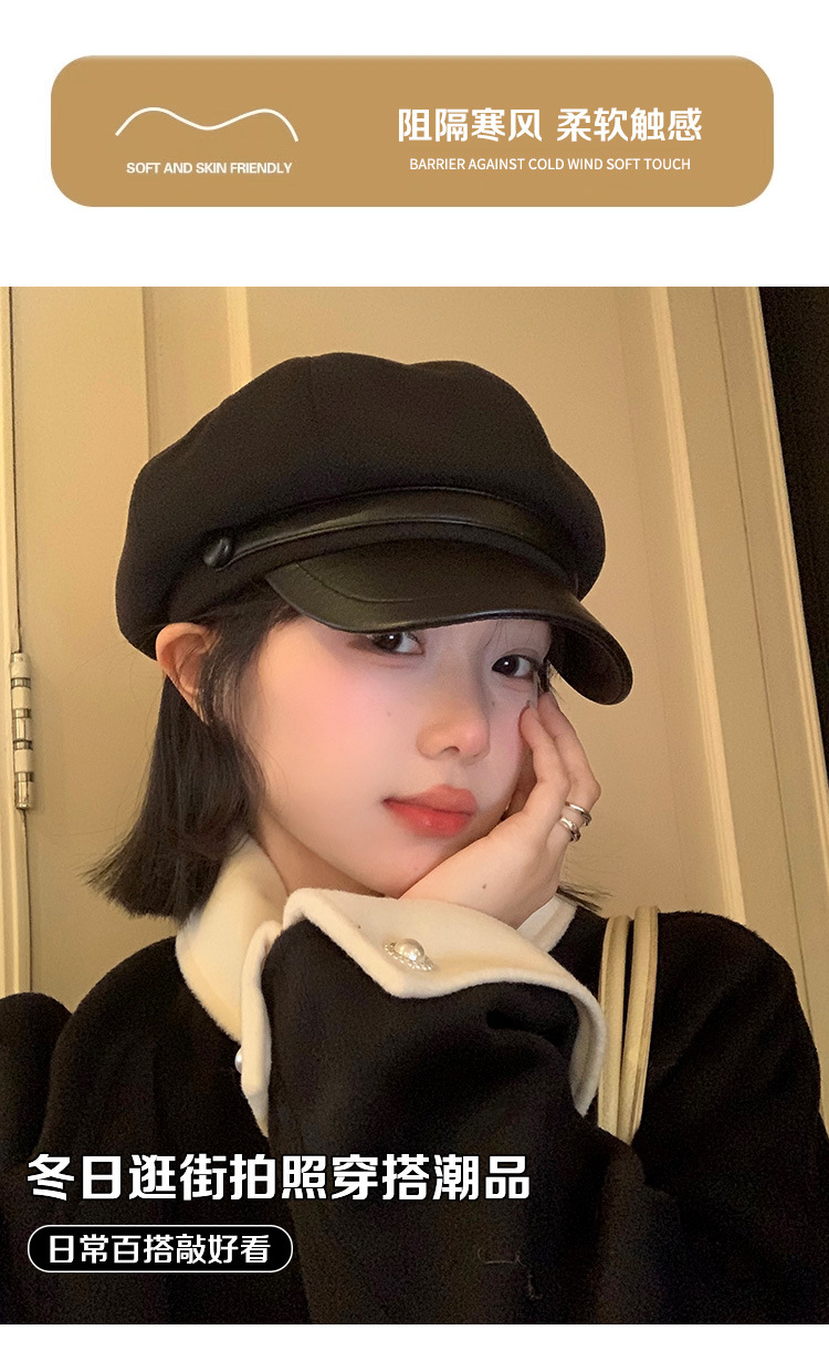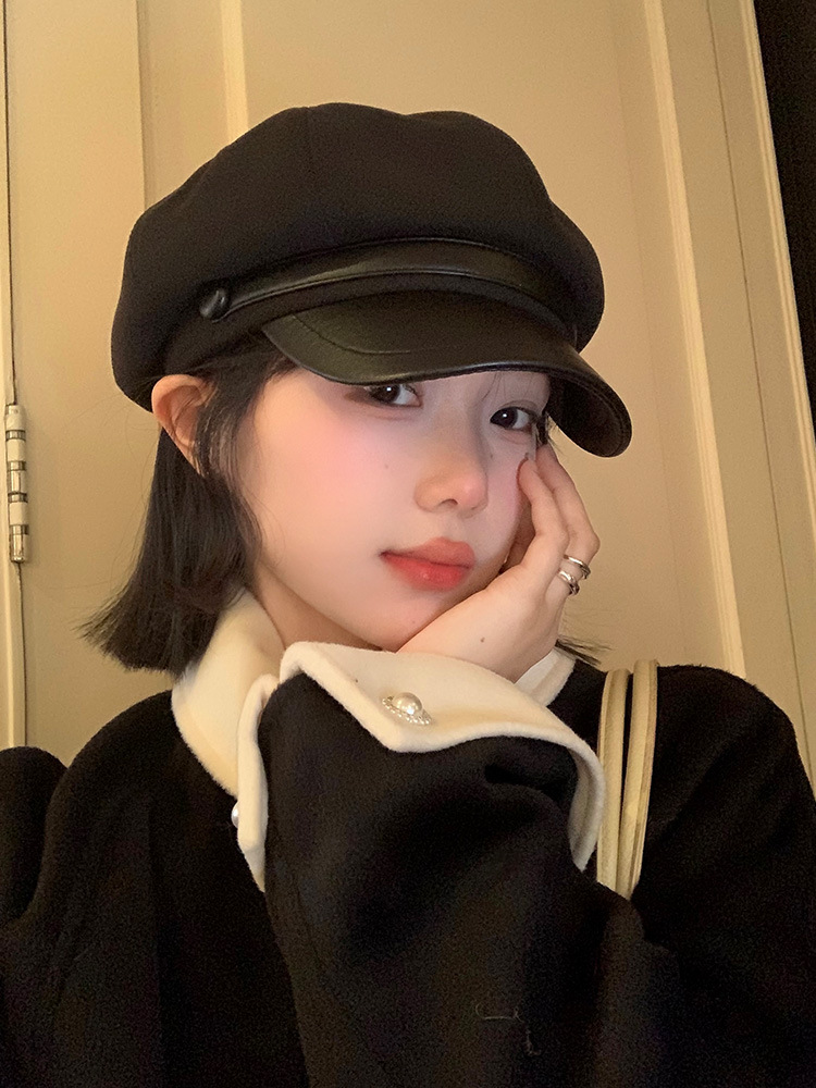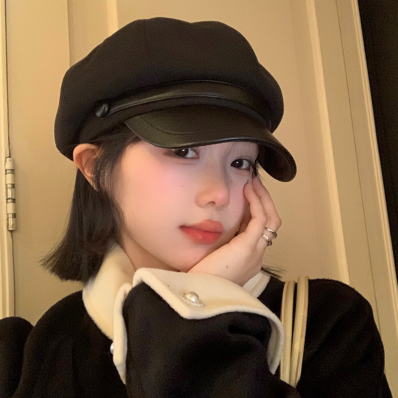 검은 고감각 팔각형 베레 여성의 가을과 겨울 일본 캐주얼 화가 모자 얼굴 오리 혀 뉴스 보이 모자