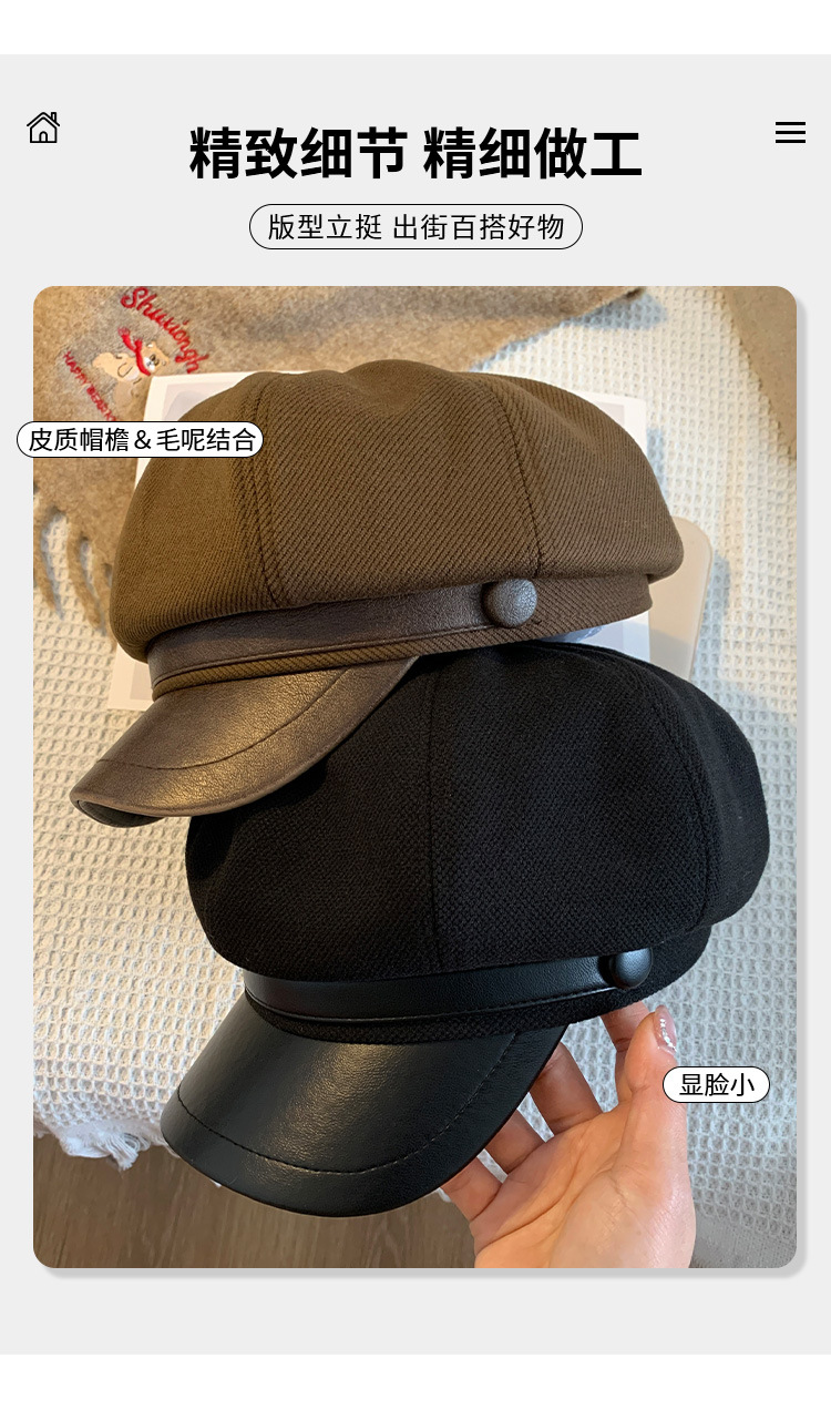 검은 고감각 팔각형 베레 여성의 가을과 겨울 일본 캐주얼 화가 모자 얼굴 오리 혀 뉴스 보이 모자스토어 가기
