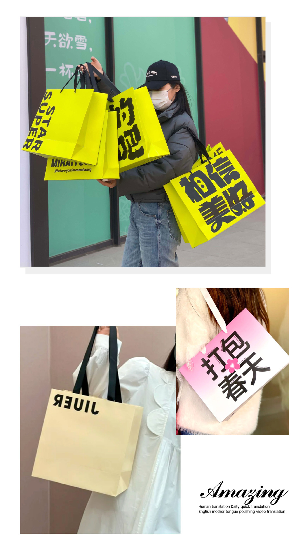 白卡纸购物超市西点商场潮流时尚定制网红表面覆膜防水耐脏手提袋