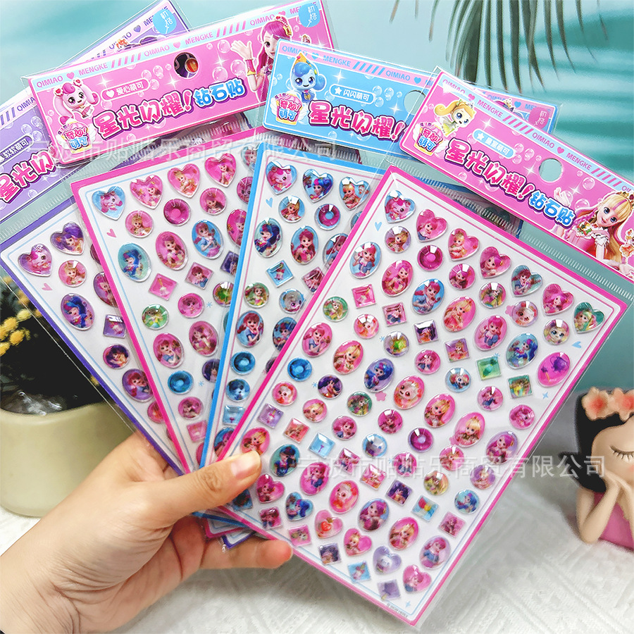 멋진 귀여운 보석 스티커 어린이 소녀 사랑 공주 3 차원 만화 크리스탈 보너스 스티커 교육 완구스토어 가기