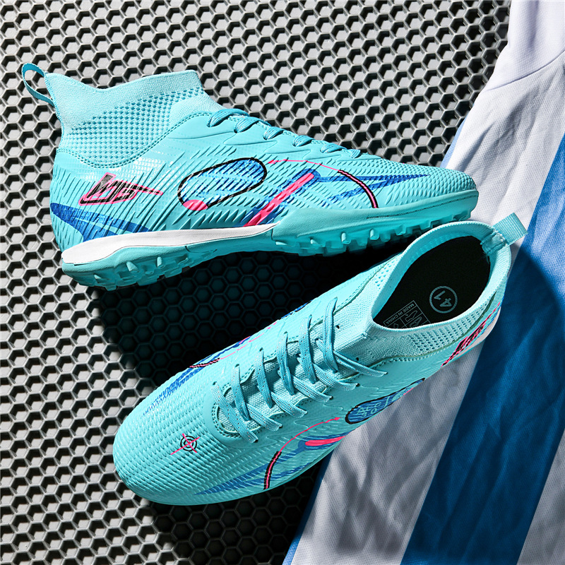 성인 및 청소년을위한 새로운 하이 탑 야외 잔디 스포츠 AG 미끄럼 방지 축구 신발 전문 게임 운동화