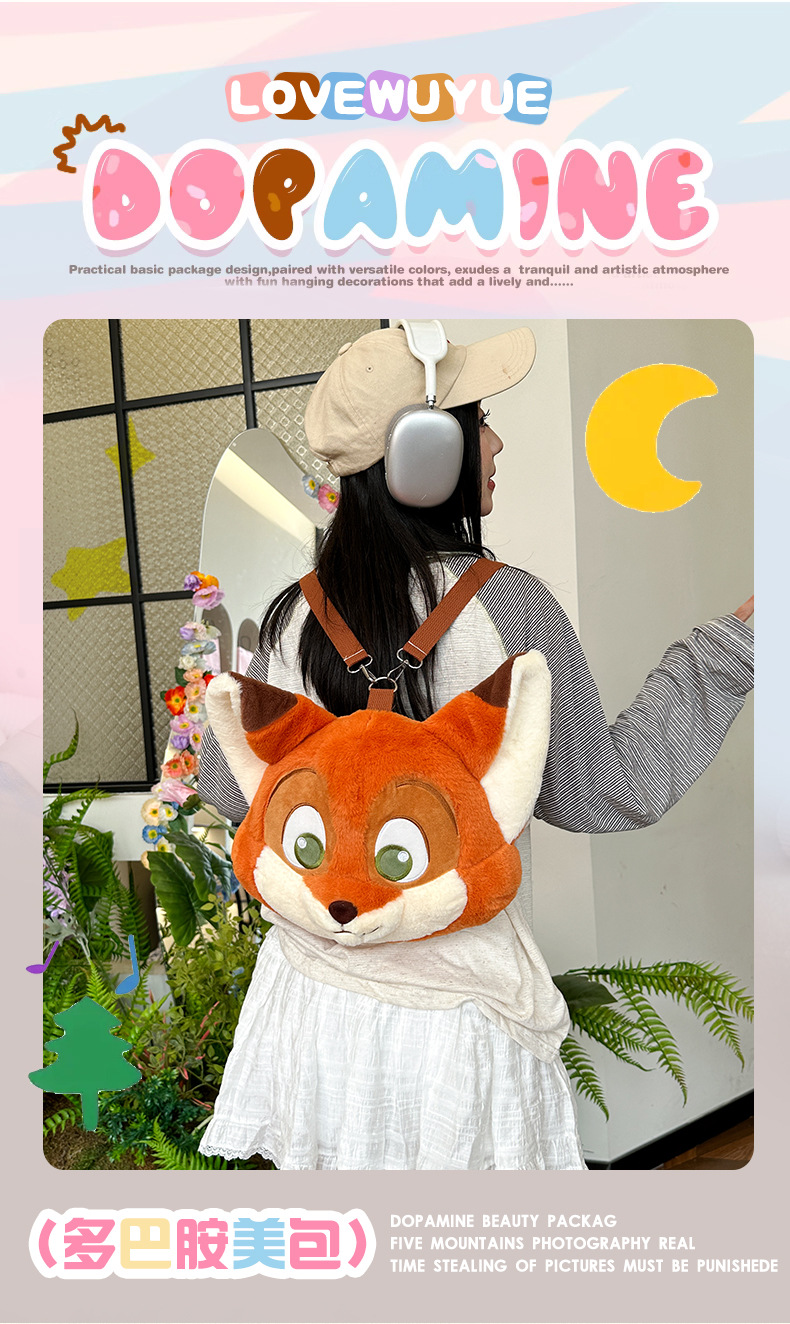 미친 동물 도시 닉 폭스 배낭 귀여운 만화 크로스 바디 가방 인형 대용량 어린이 배낭