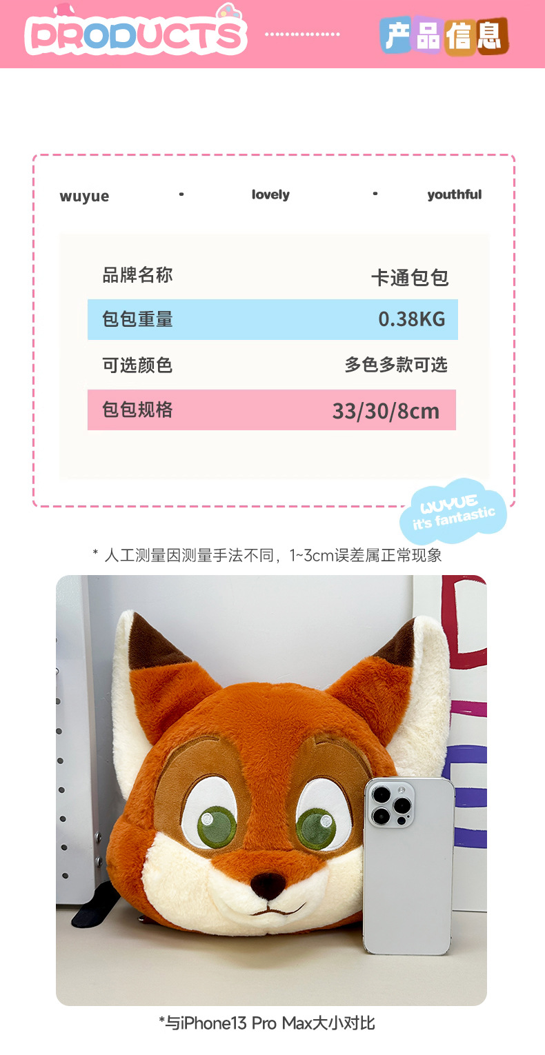 미친 동물 도시 닉 폭스 배낭 귀여운 만화 크로스 바디 가방 인형 대용량 어린이 배낭스토어 가기