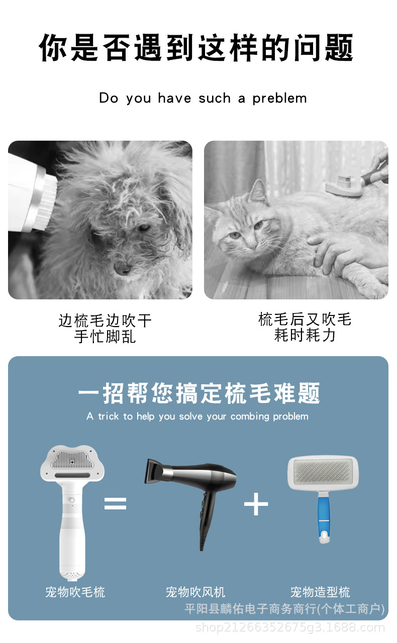 국경 간 애완 동물 뜨거운 공기 빗 청소 아름다움 빗 빗 3 대 1 고양이 개 머리 마사지 건조스토어 가기