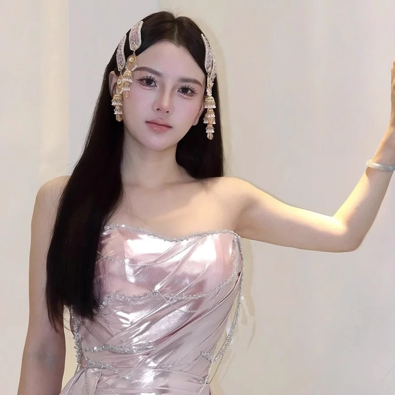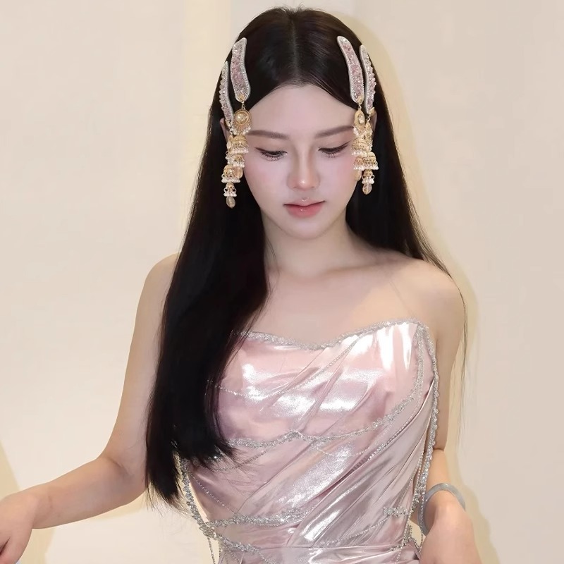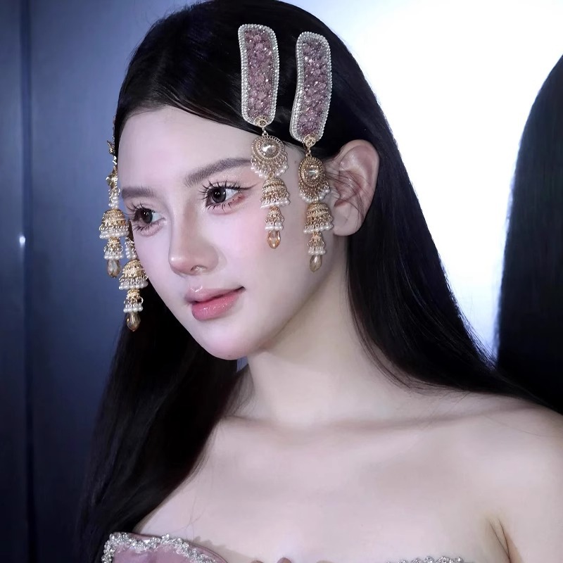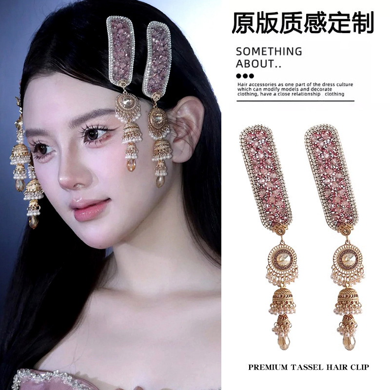 핑크 모조 다이아몬드 타셀 헤어 클립 여성 2025 년 새로운 절묘한 사이드 앞머리 클립 새로운 중국 헤어 액세서리와 함께