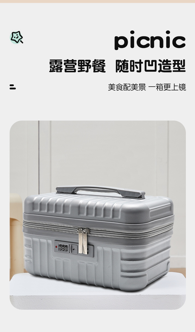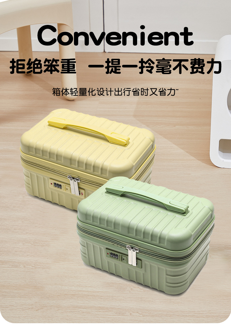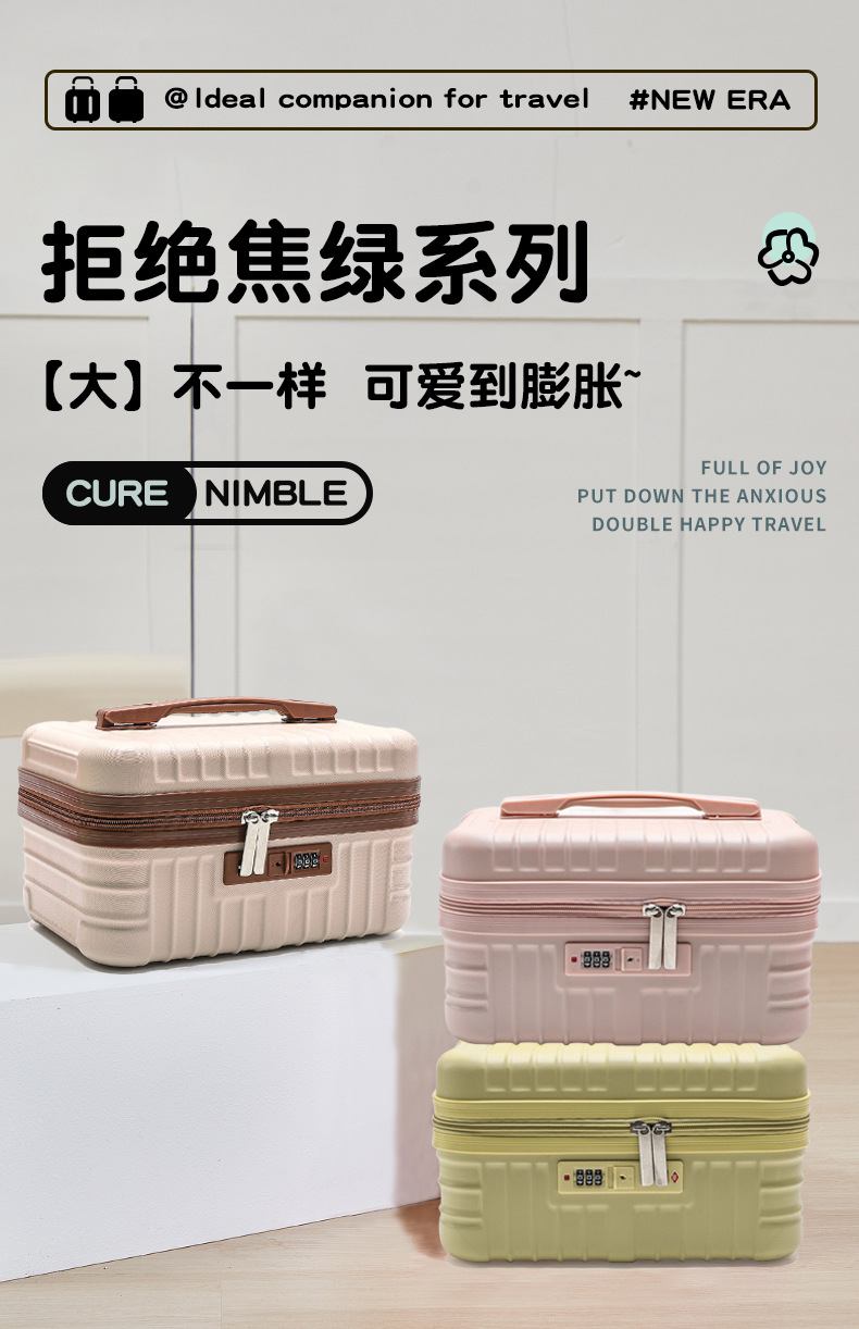스퀘어 박스 핸드 수하물 추가 가방 여성 14 인치 탑승 경량 슬리브 풀 로드 작은 신선하고 휴대용 메이크업 케이스