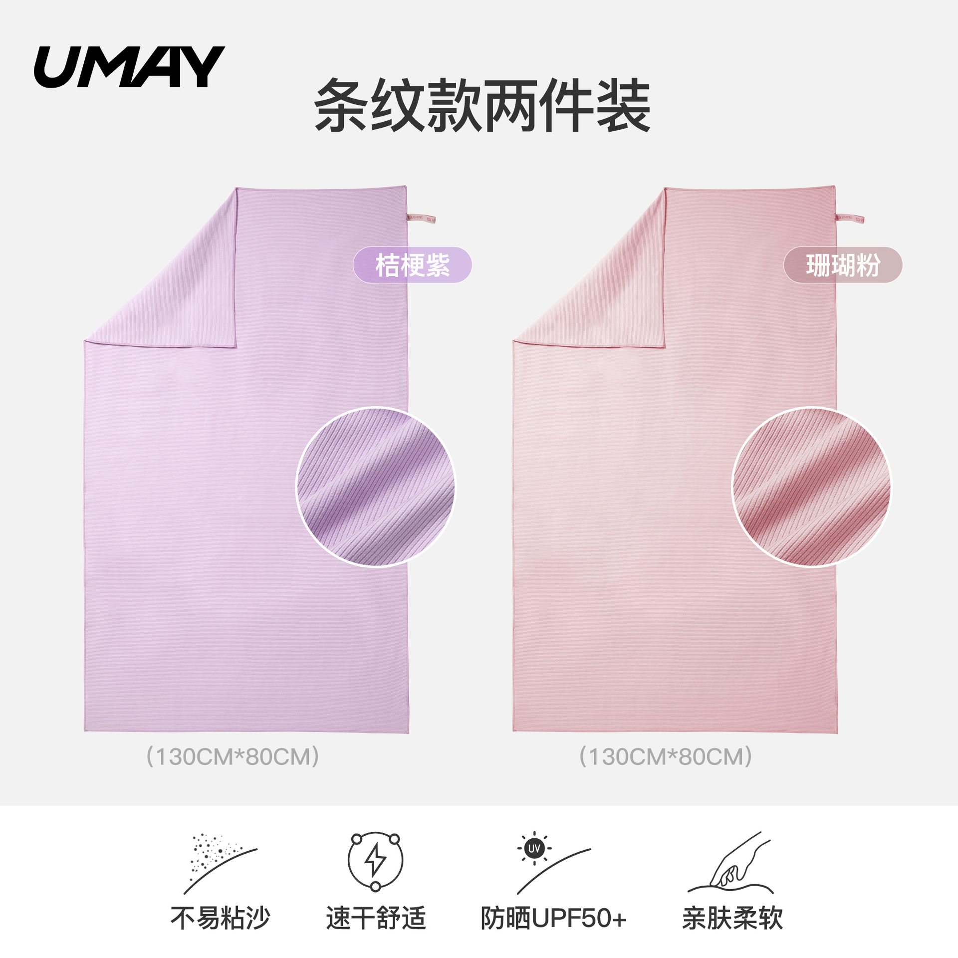 • [스트라이프스타일 2팩/L사이즈] 도라지 퍼플 + 코랄핑크 130*80cm 속건성 | 흡수성 | 피부친화적이고 부드러움