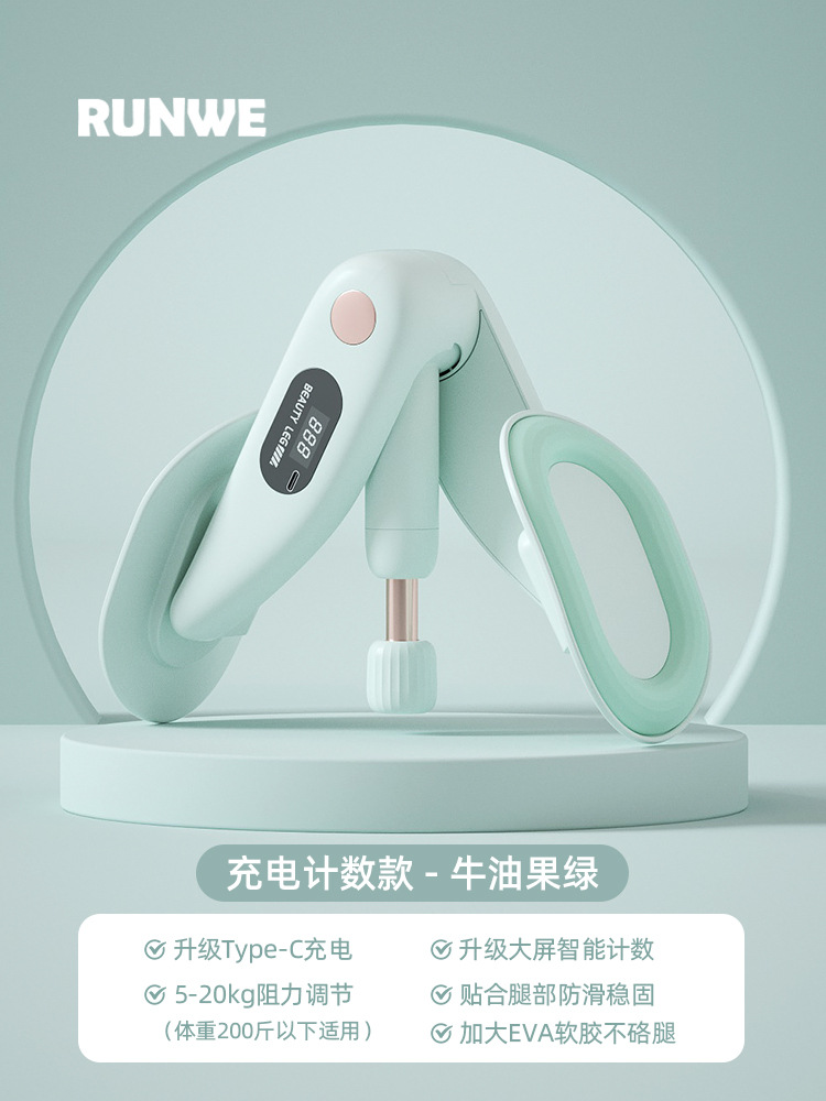 • [업그레이드된 스마트 카운팅 모델 - 아보카도 그린] 5-20kg 저항 조절 가능/증가 EVA 부드러운 고무로 다리가 아프지 않음