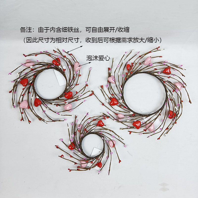 하트 모양 장식 화환 문걸이 벽걸이 발렌타인데이 선물 장식품 축제 장식 새해 창문 장식품 해외 직구