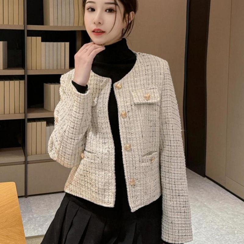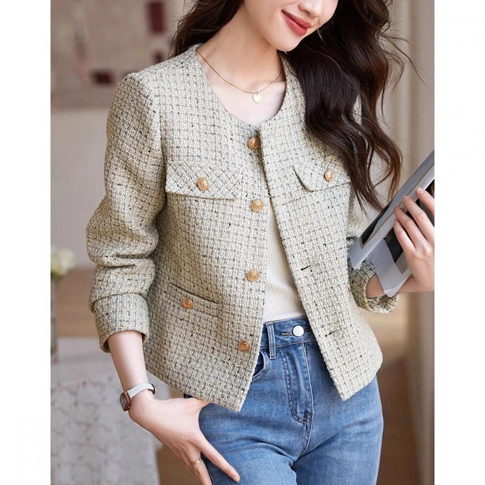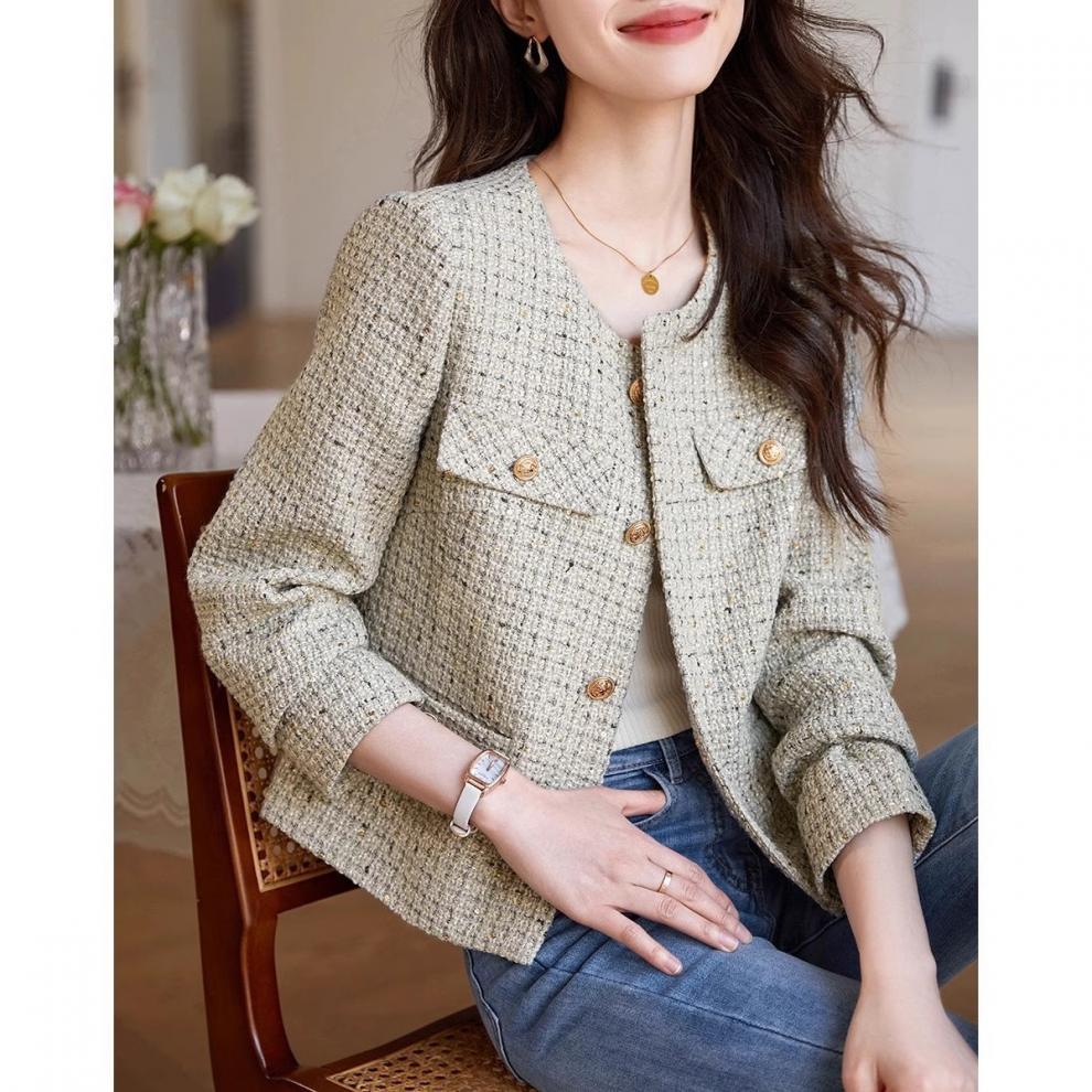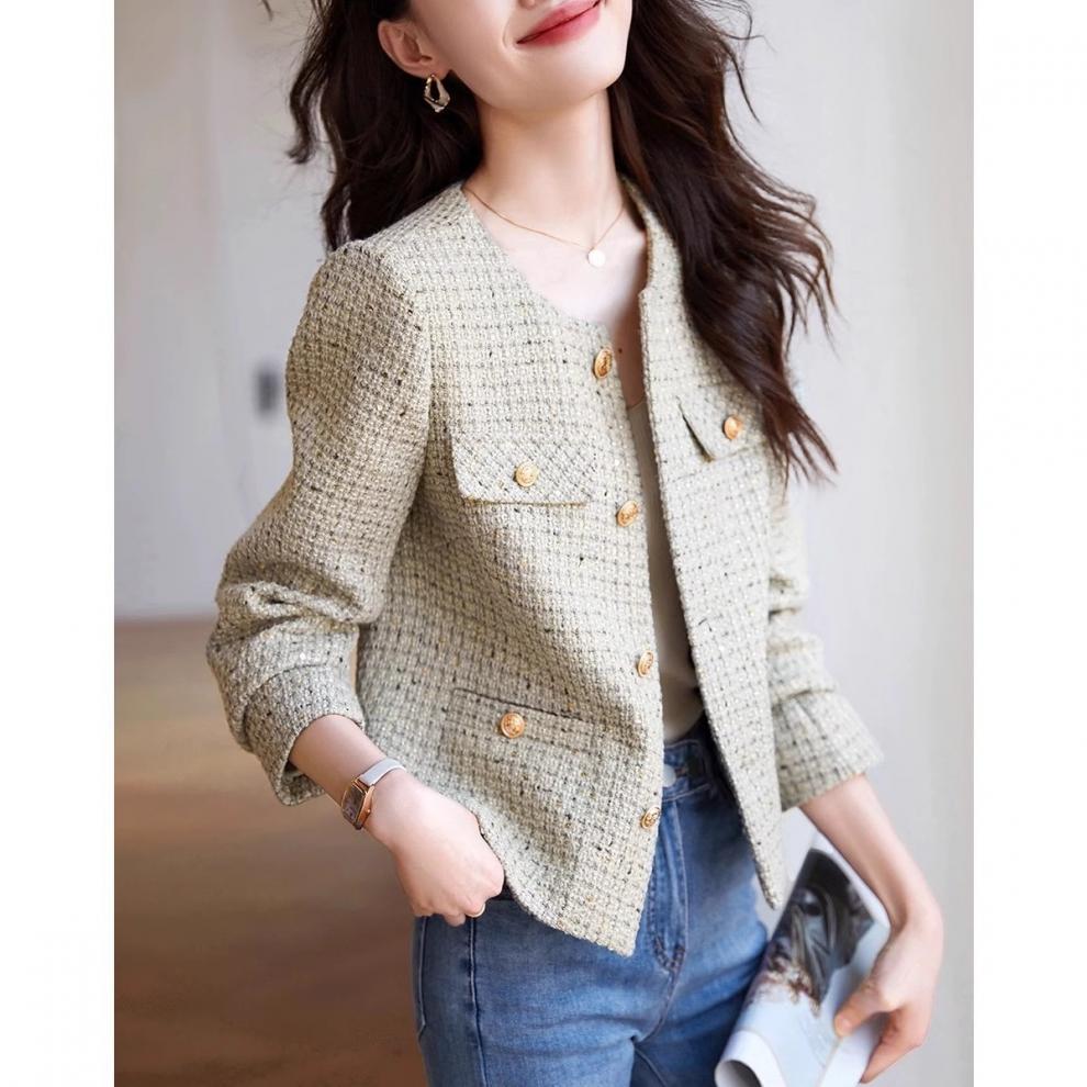 샤넬 스타일 코트 여성의 봄과 가을 새로운 탑 복고풍 고급 디자인 센스 그린 슬림 우아한 사교계 짧은 코트스토어 가기