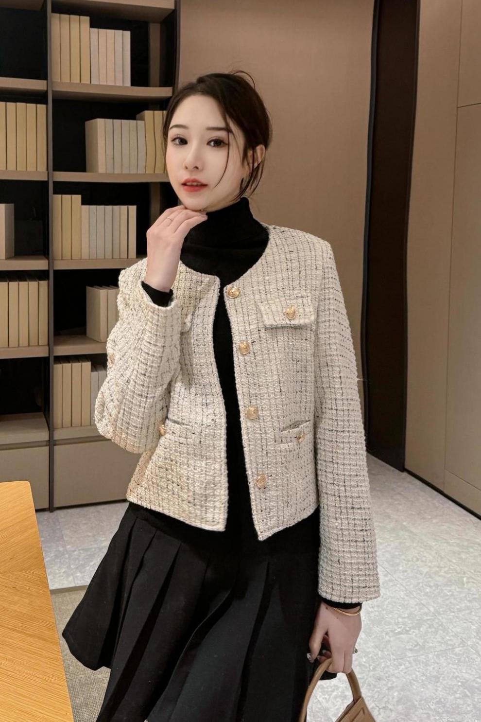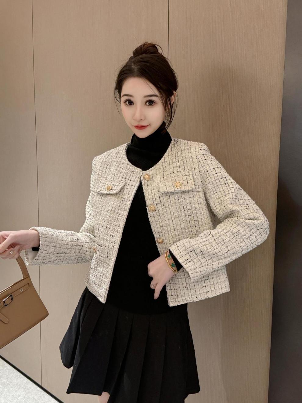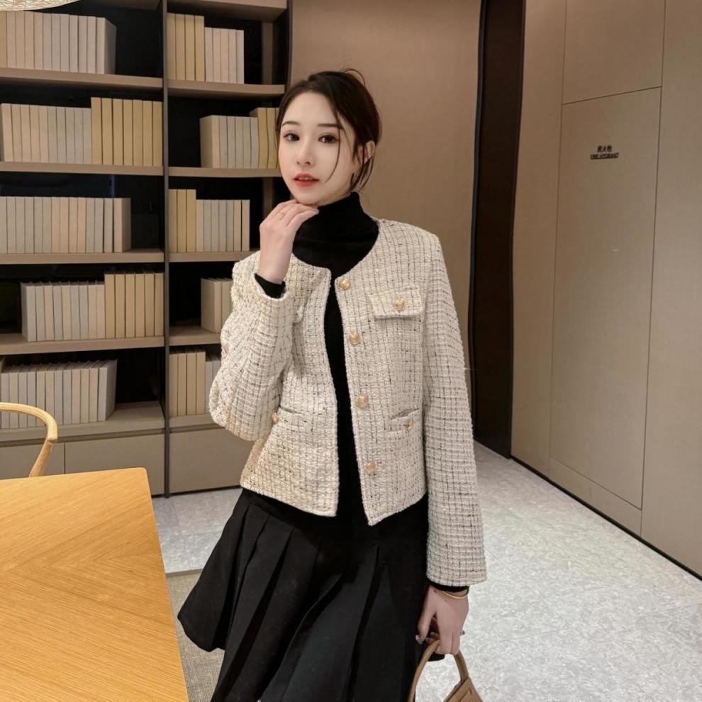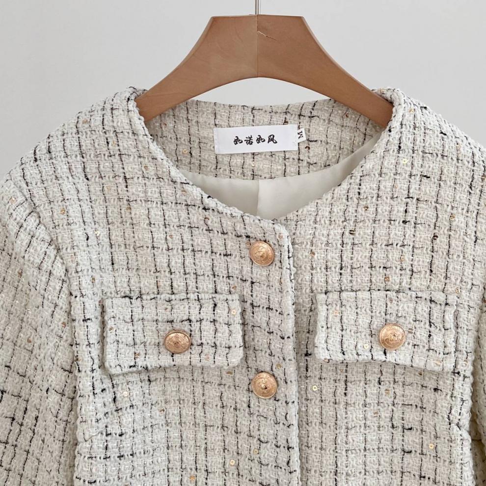 샤넬 스타일 코트 여성의 봄과 가을 새로운 탑 복고풍 고급 디자인 센스 그린 슬림 우아한 사교계 짧은 코트스토어 가기