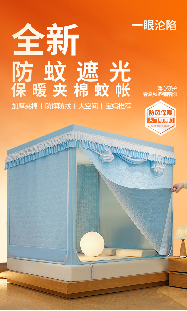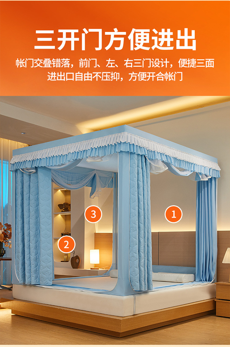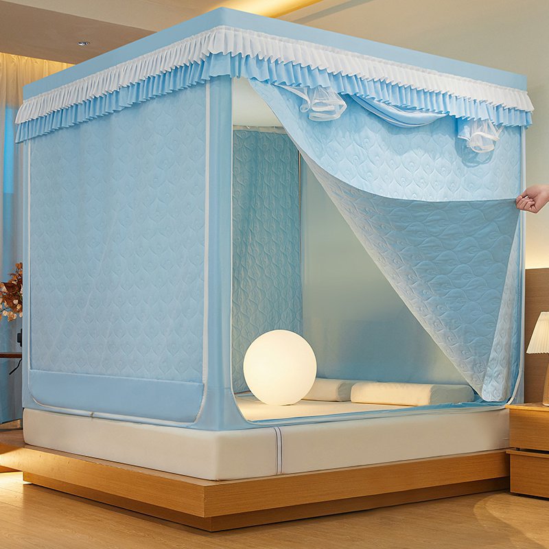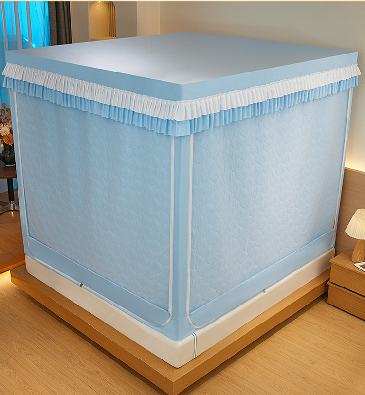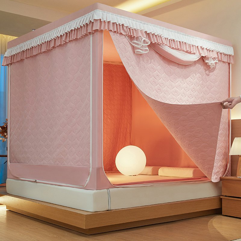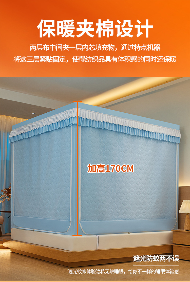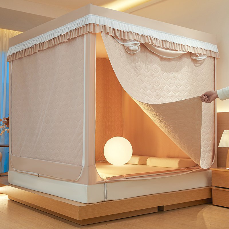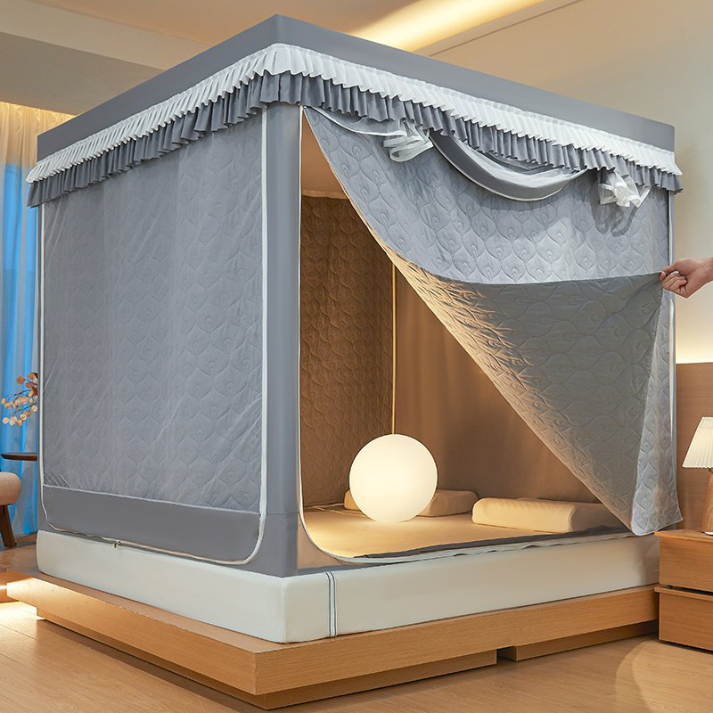 두꺼운 따뜻한 퀼트 음영 침대 커튼 모기장 침실 3 도어 안티 드롭 지퍼 그물 방풍 텐트 두꺼운 브래킷스토어 가기