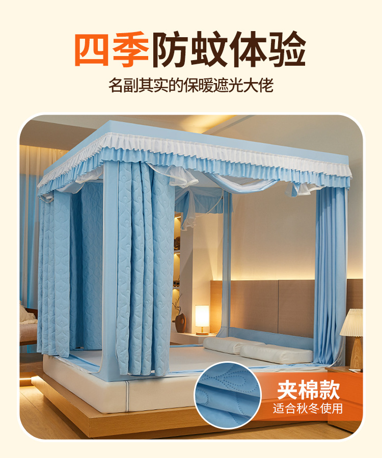 두꺼운 따뜻한 퀼트 음영 침대 커튼 모기장 침실 3 도어 안티 드롭 지퍼 그물 방풍 텐트 두꺼운 브래킷
