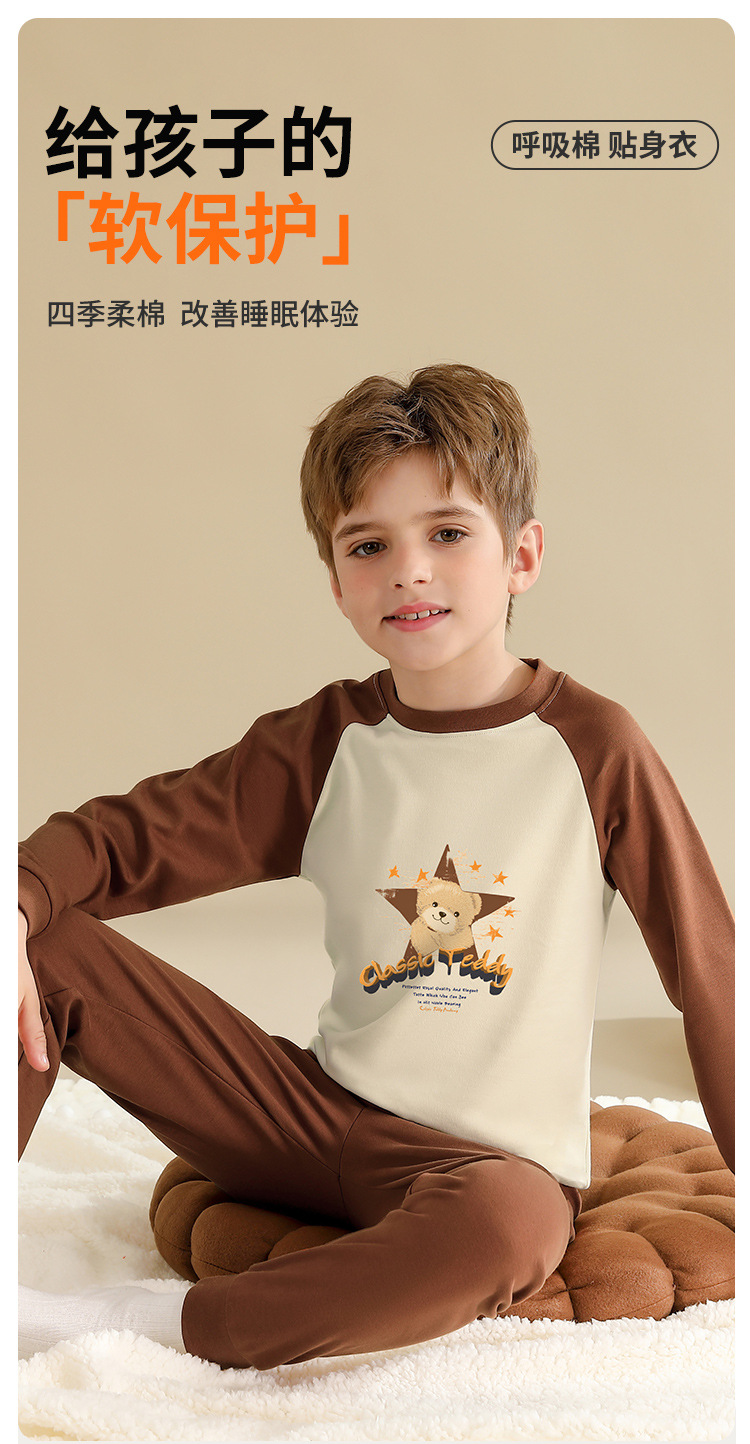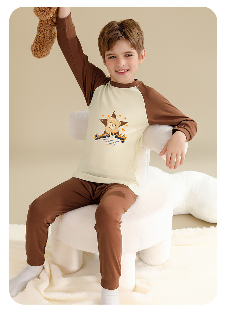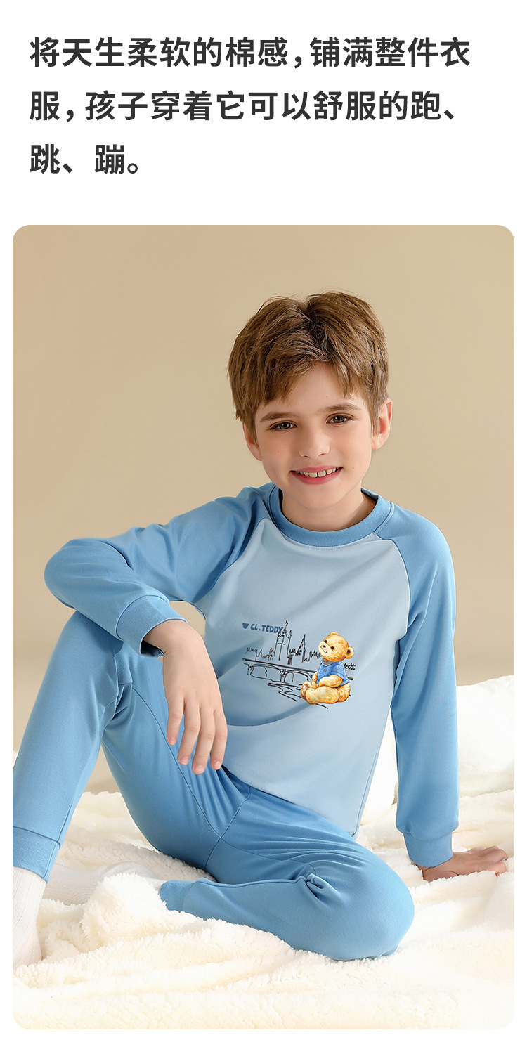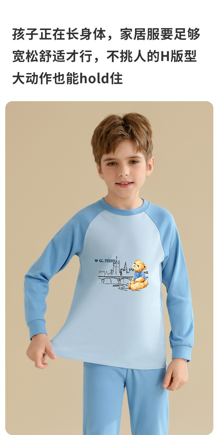 클래식 테디 보이즈 열 속옷 세트 가을 새로운 순면 파자마 어린이 홈 의류 중대형 아동복 트렌디스토어 가기