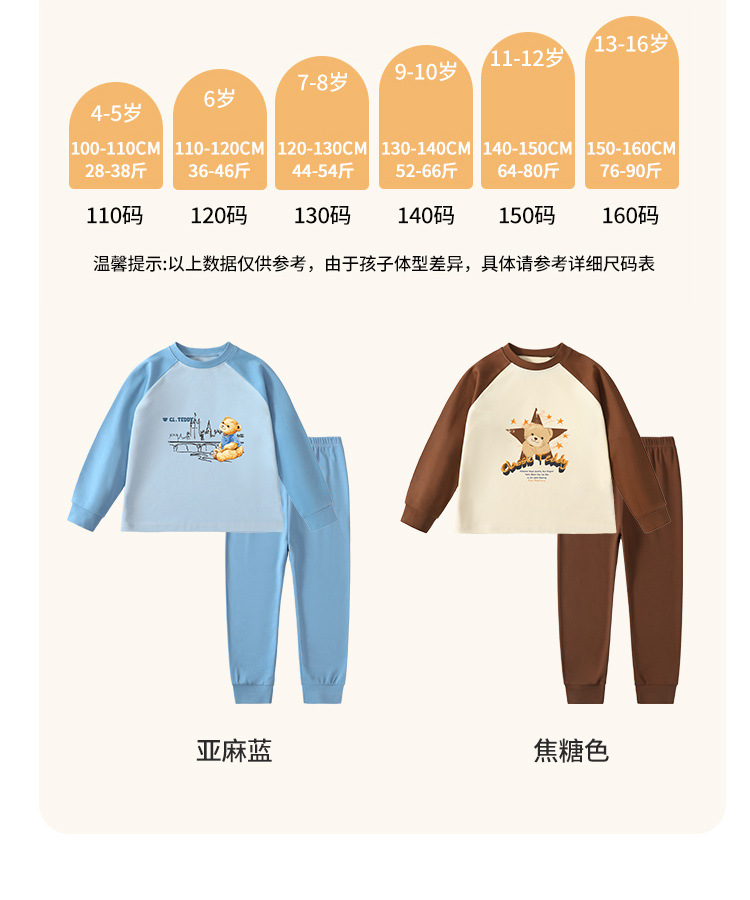 클래식 테디 보이즈 열 속옷 세트 가을 새로운 순면 파자마 어린이 홈 의류 중대형 아동복 트렌디
