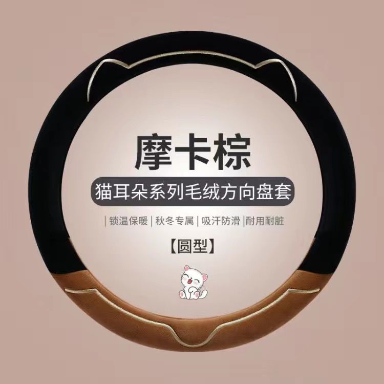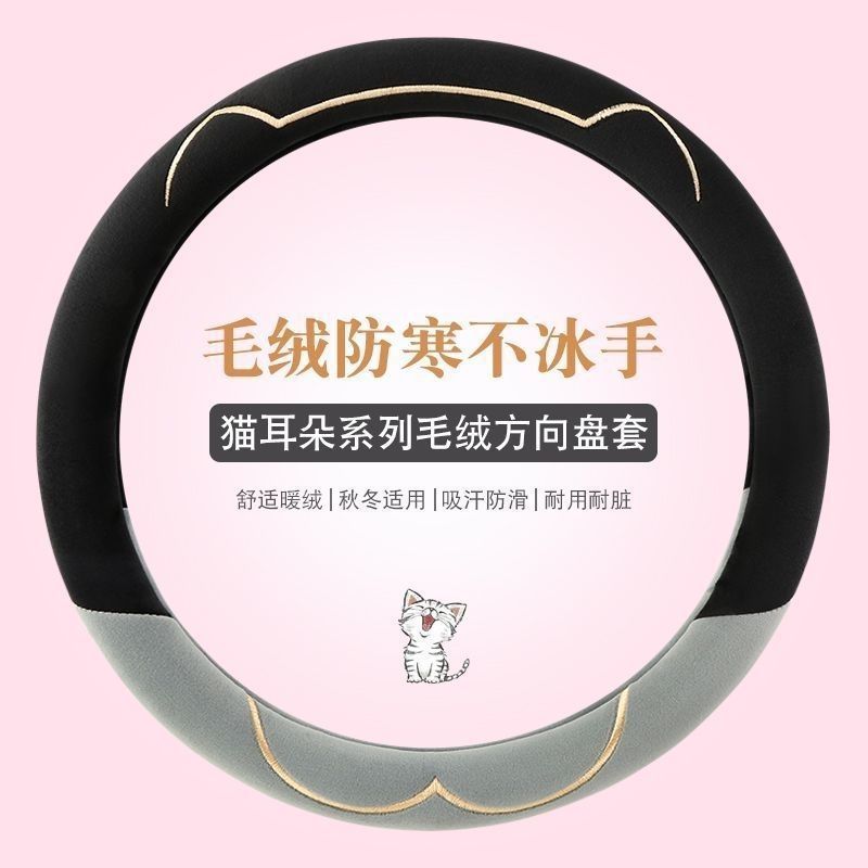가을과 겨울 자동차 짧은 봉제 스티어링 휠 커버 유니버설 따뜻한 미끄럼 방지 짧은 봉제 남성과 여성의 귀여운 겨울 핸들 커버