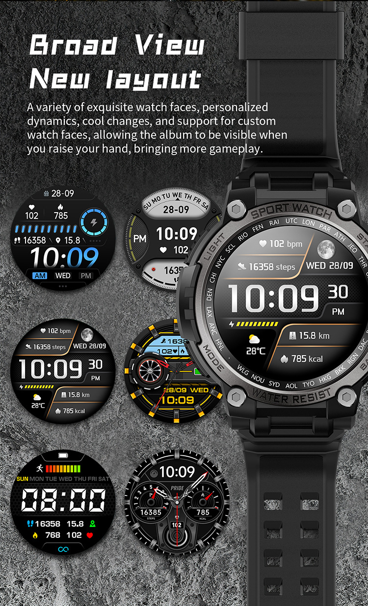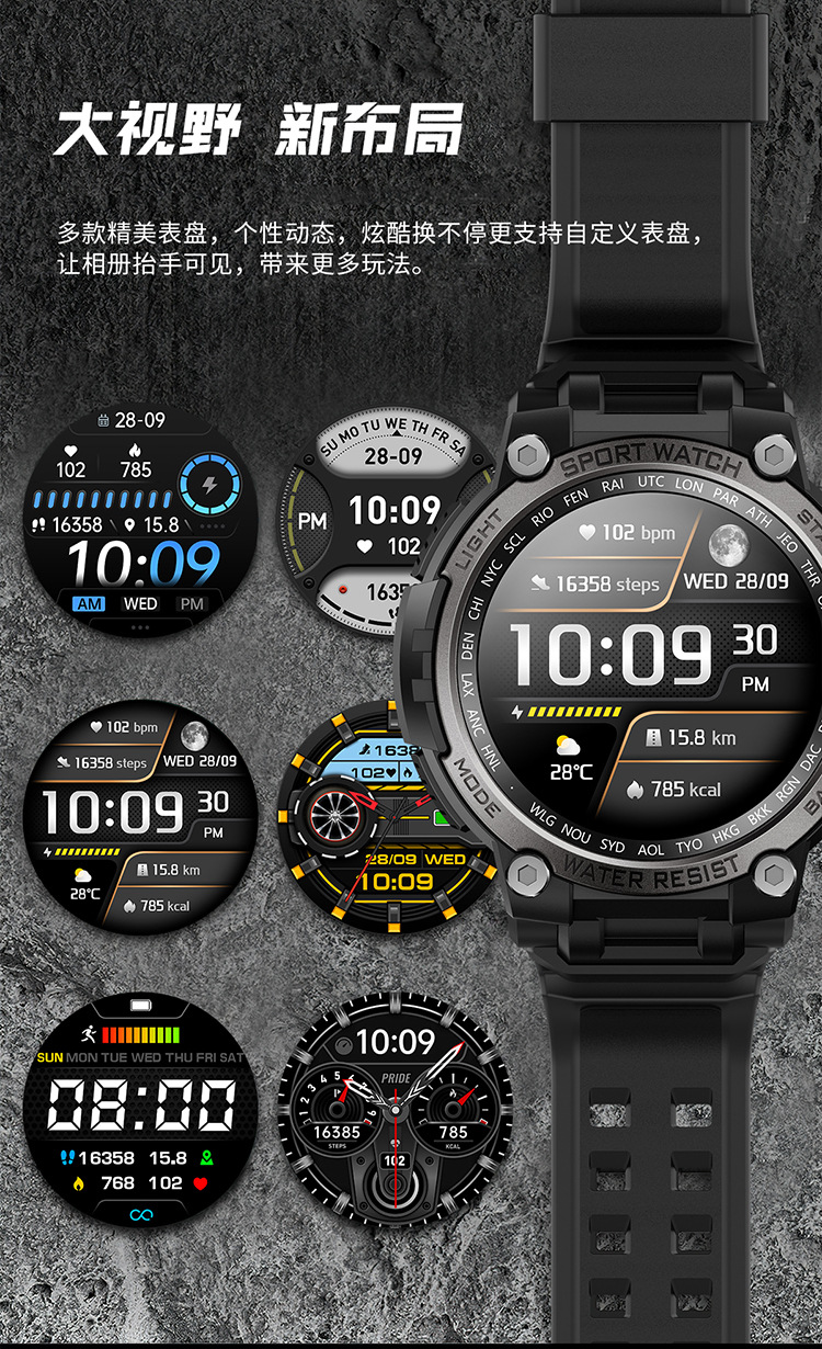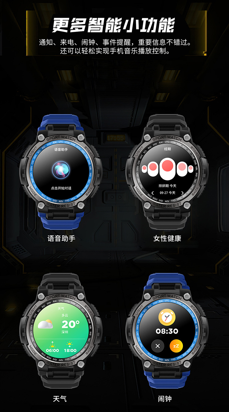 국경 간 LC17 스마트 시계 블루투스 전화 음성 보조 심장 박동 혈액 산소 나침반 야외 스포츠 시계