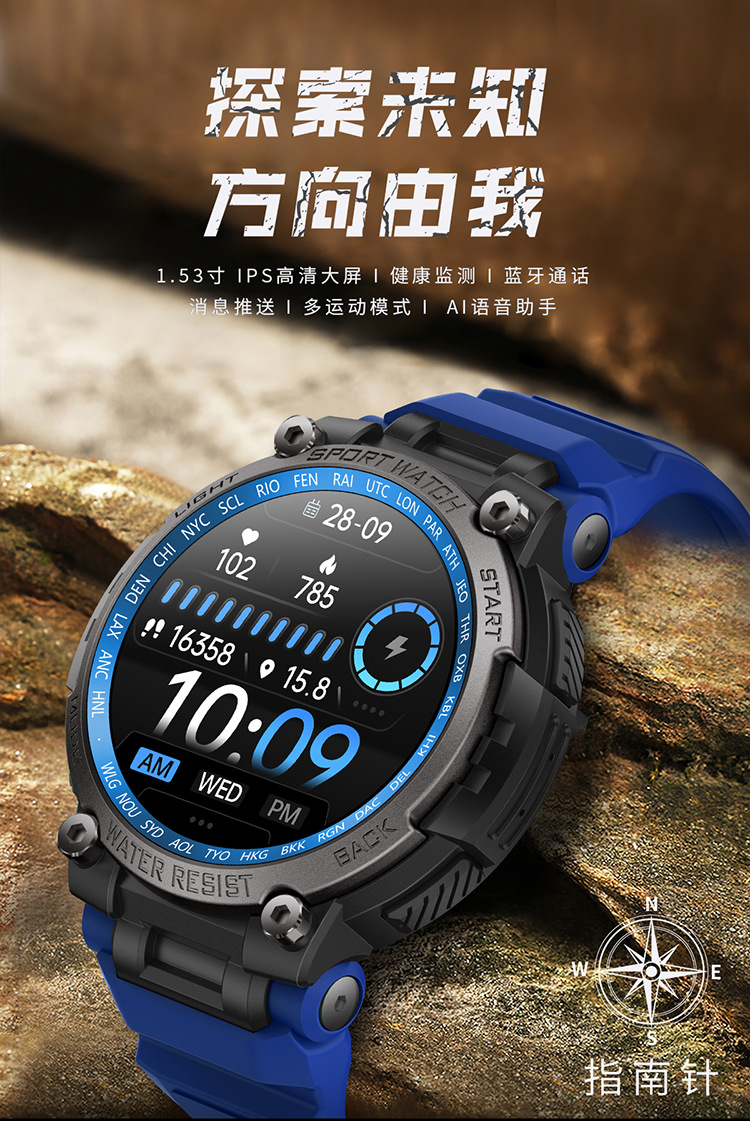 국경 간 LC17 스마트 시계 블루투스 전화 음성 보조 심장 박동 혈액 산소 나침반 야외 스포츠 시계스토어 가기