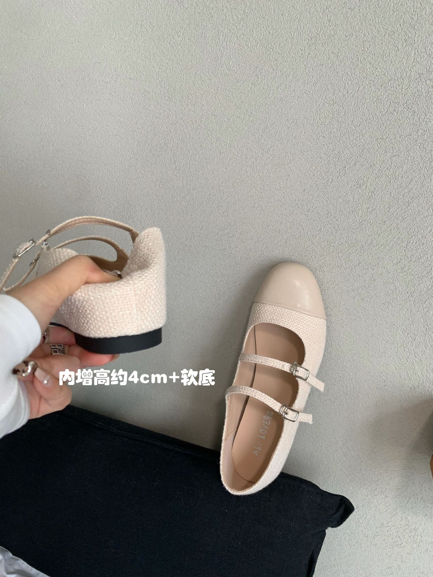 내부 높이 증가 4cm 2025 봄 새로운 한 캐릭터 버클 라운드 헤드 플랫 두꺼운 싱글 레이어 신발 미드 힐 얕은 여성용 신발스토어 가기