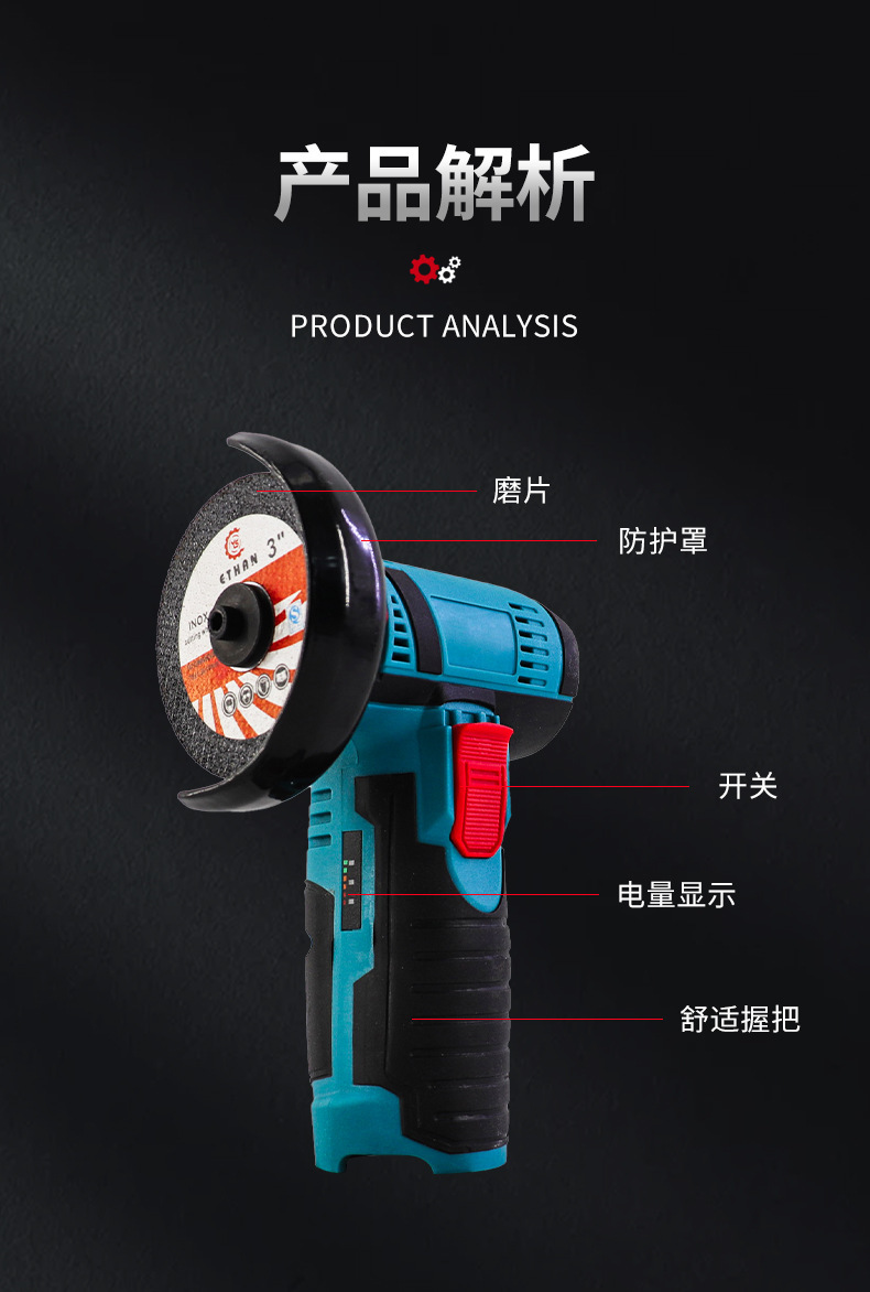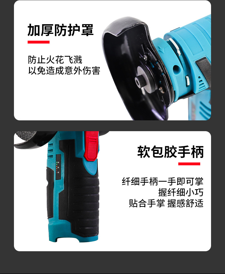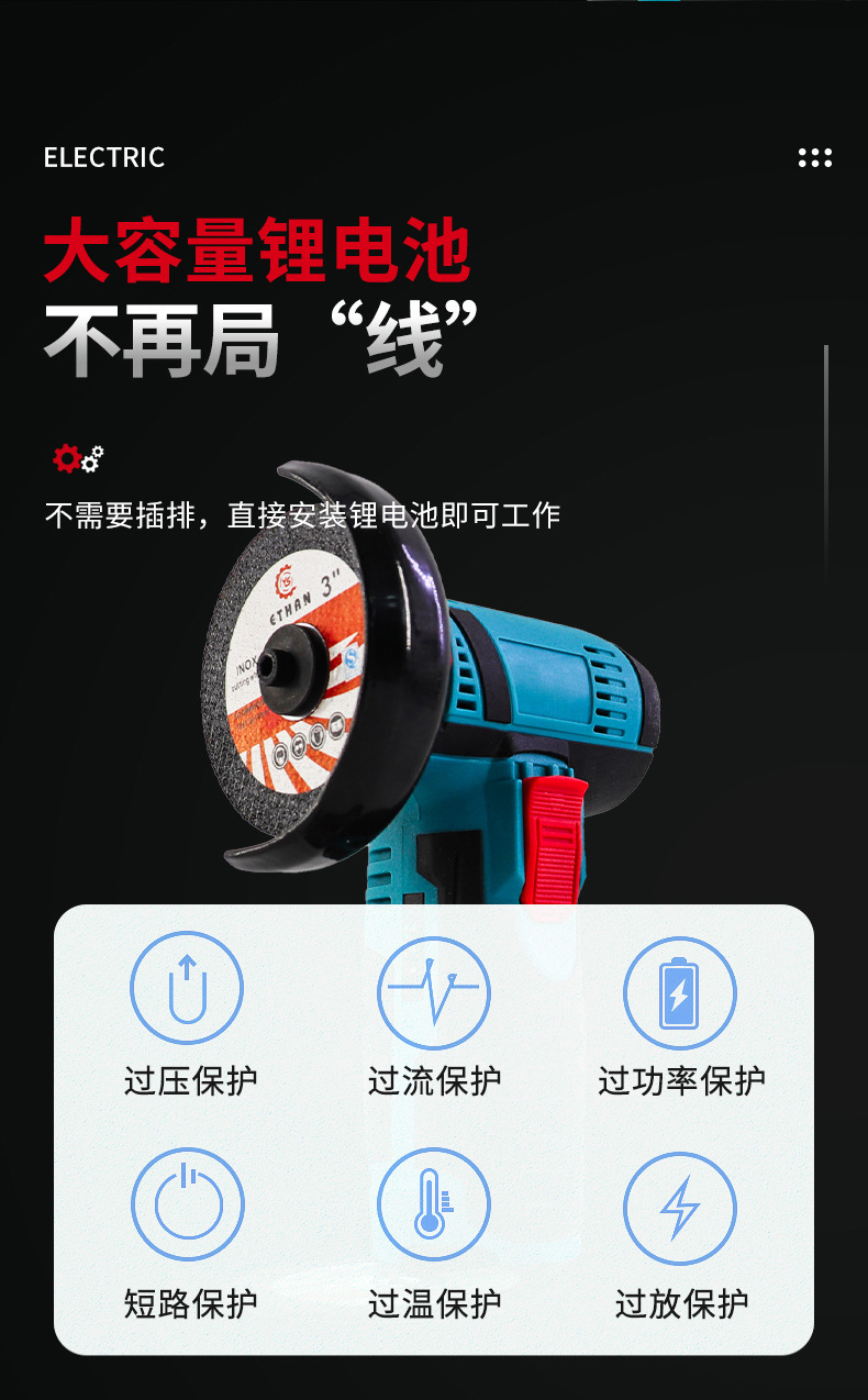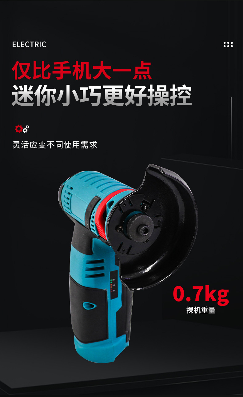무선 리튬 배터리 브러시 모터 절단 및 연마 통합 구리 코어 모터 다기능 가정용 미니 컴팩트 앵글 그라인더