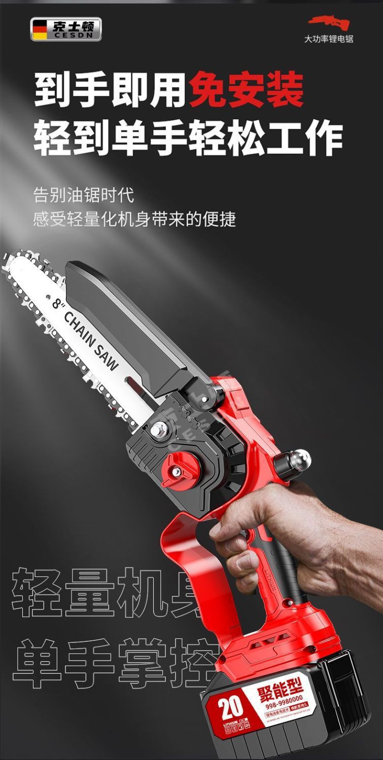 • 독일 고급형 [1 고효율 벌목] 브러시리스 + 전자 디스플레이 + 설치 불필요 - [에너지 집약형 배터리 20개] 전기 3개 + 담금질 체인 3개 + 높은 가지 기둥