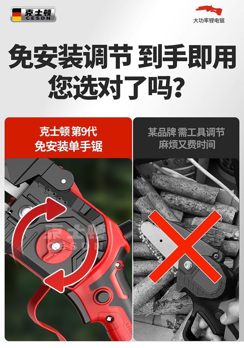 • 독일 고급형 [1 고효율 벌목] 브러시리스 + 전자 디스플레이 + 설치 불필요 - [10배 에너지 집약 배터리] 배터리 1개 + 담금질 체인 1개