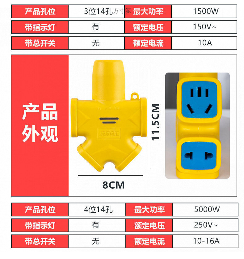• 고품질 14홀 노란색 표시등 - 3개 패키지 패키지 [플러그 3개 무료]
