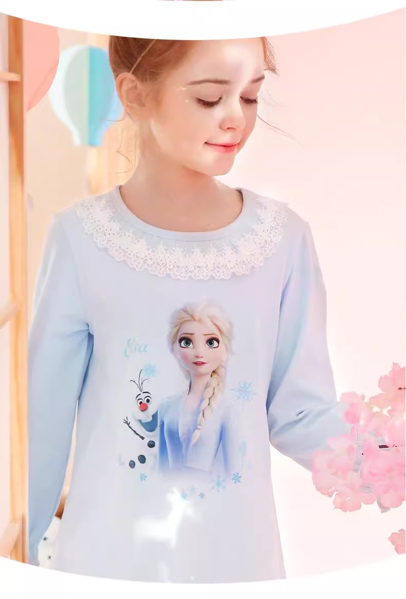 [32S 빗질 코튼] 소녀 순면 잠옷 세트 봄과 가을 새로운 어린이 여자 여자 홈 옷