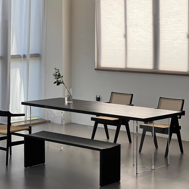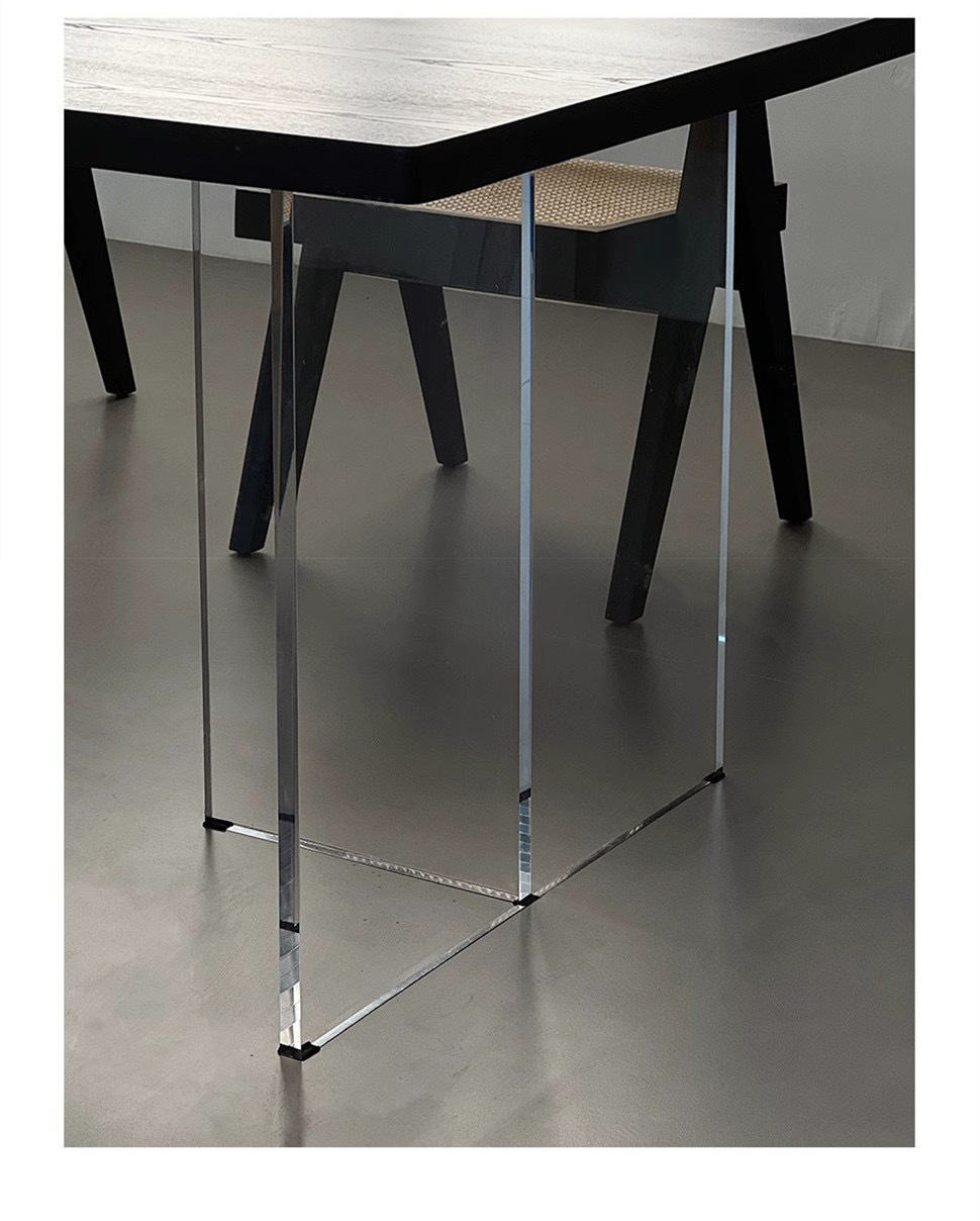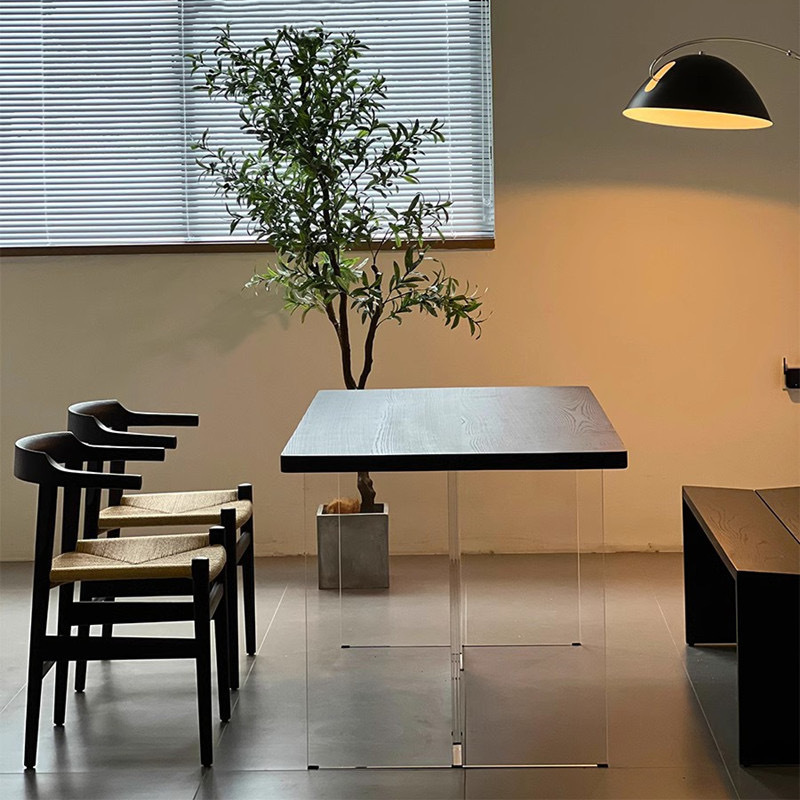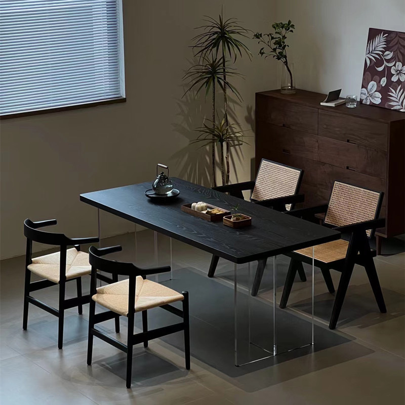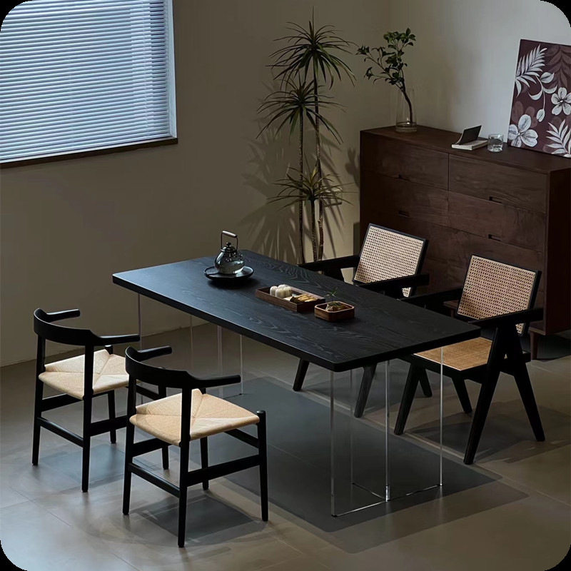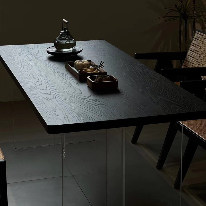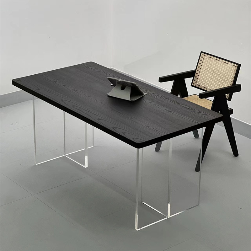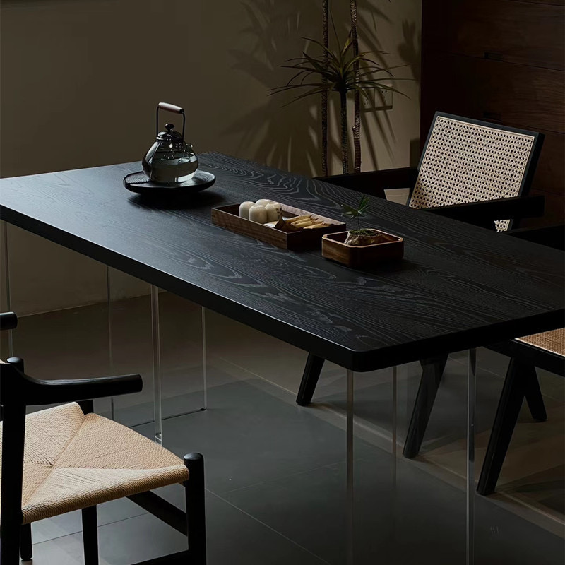 조용한 스타일 탄산 블랙 솔리드 우드 식탁 로그 대형 보드 작업대 매우 간단한 스타일 아크릴 서스펜션 오피스 티 테이블
