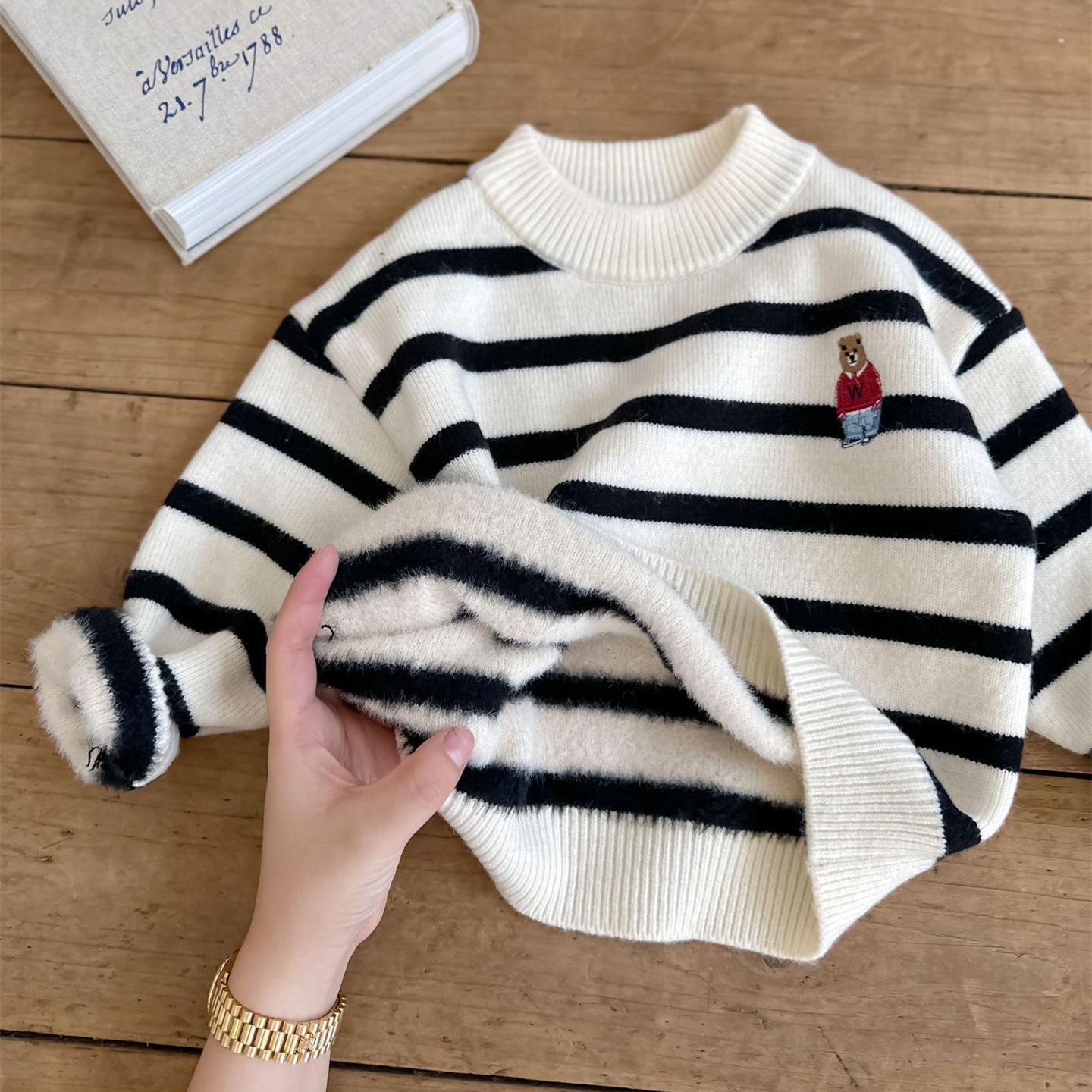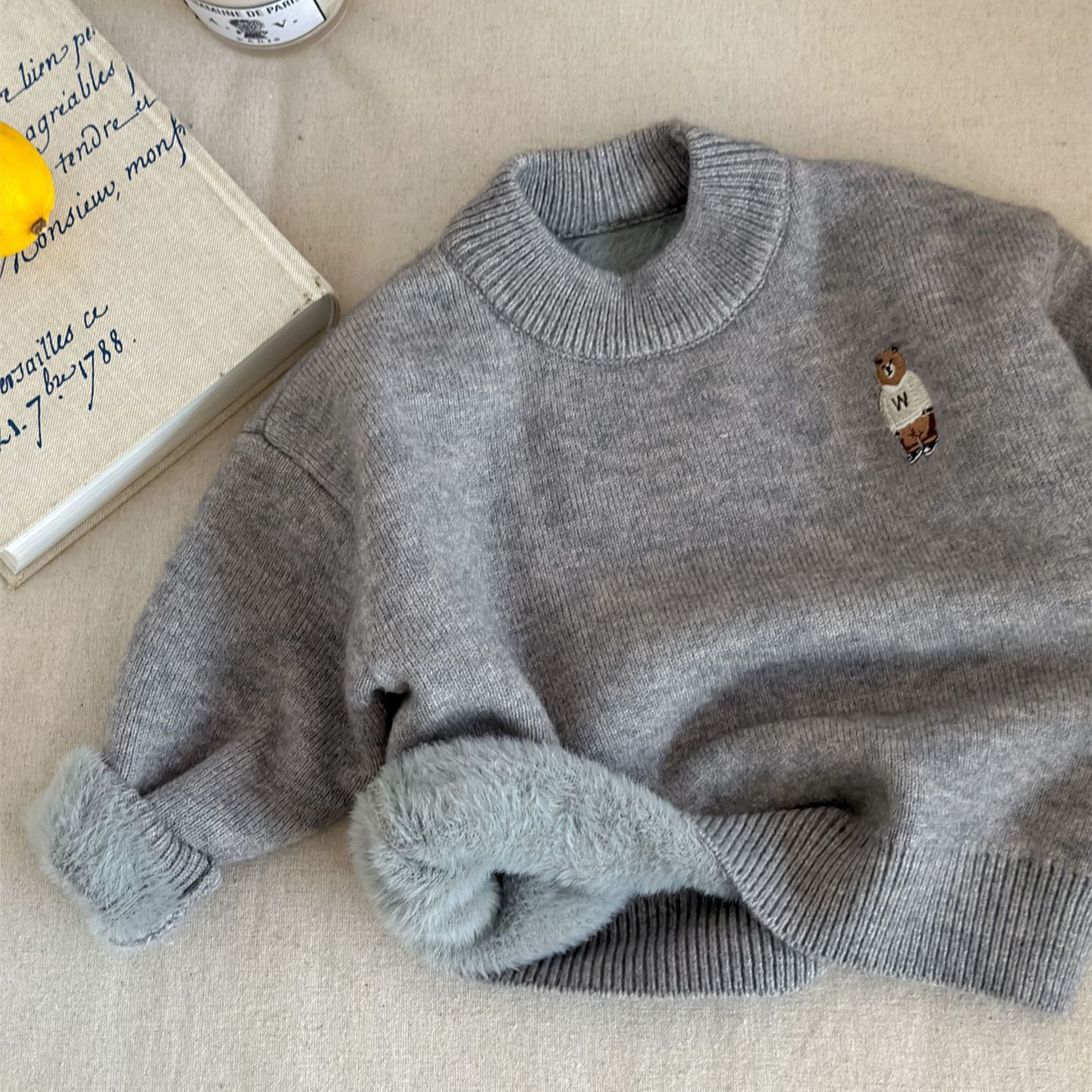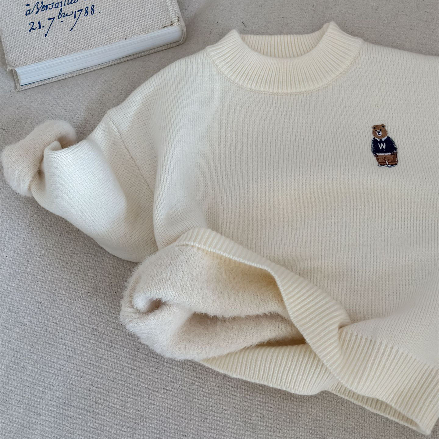 겨울용 아동용 플러시 스웨터, 남아 및 여아용 자수 반 터틀넥 스웨터, 베이비 지퍼 울 풀오버, 두꺼운 YC스토어 가기