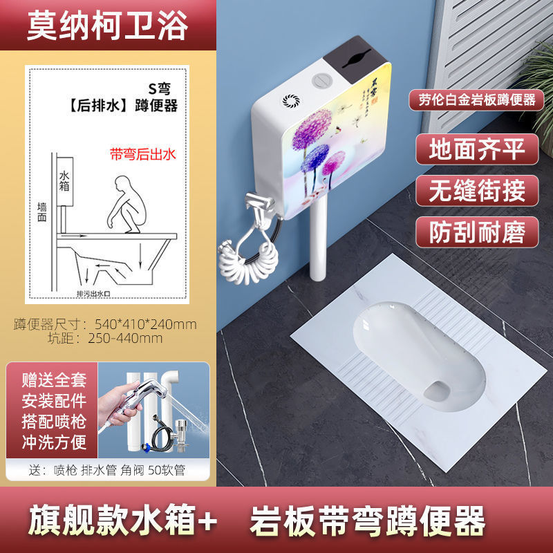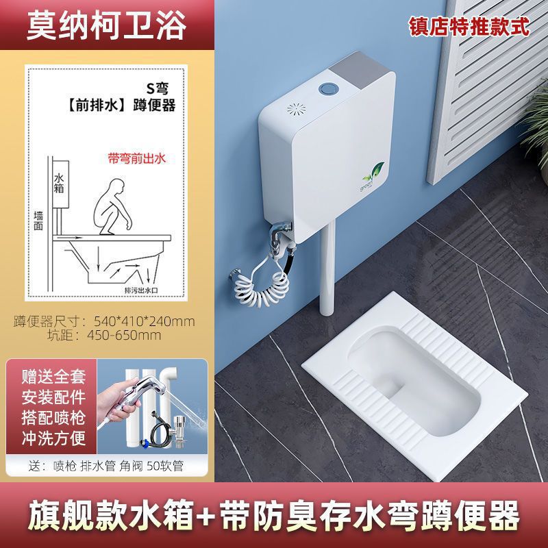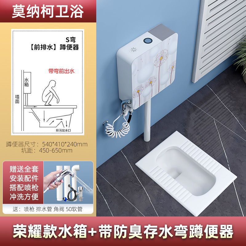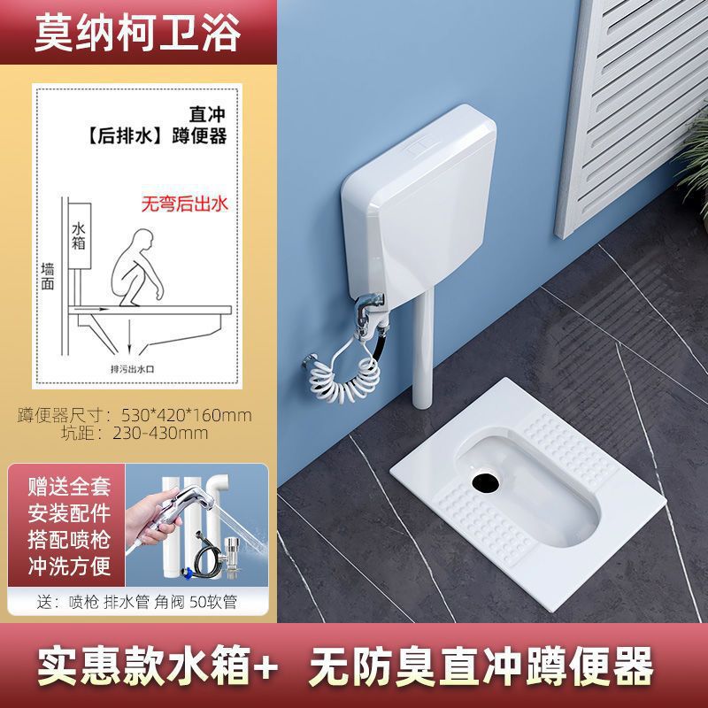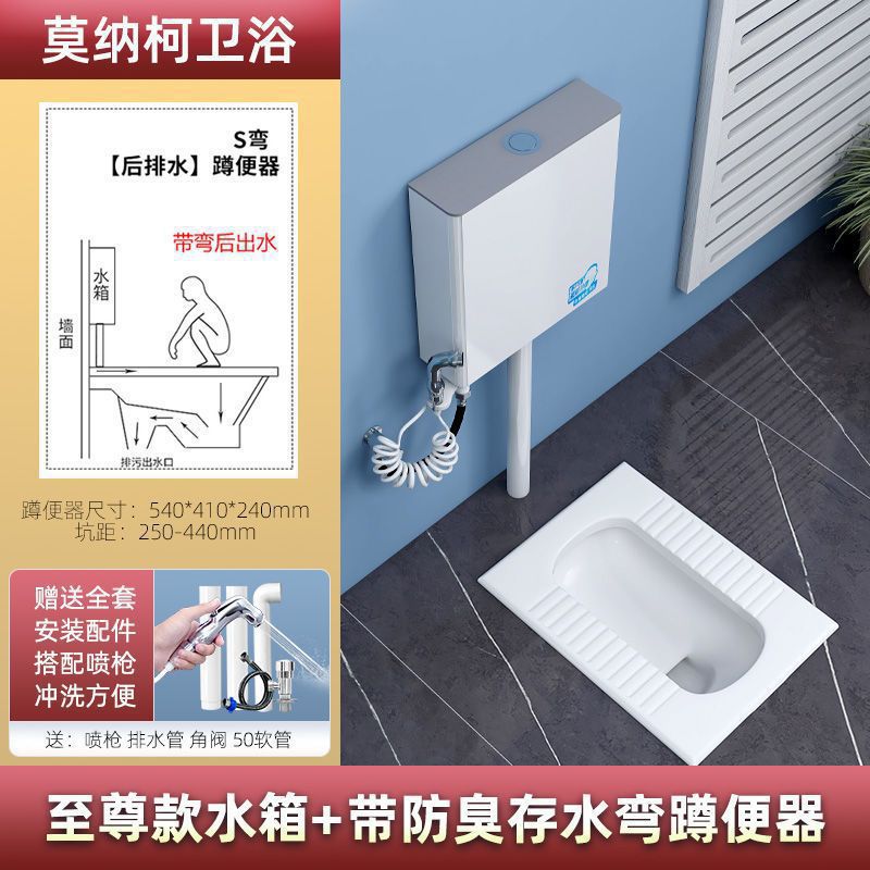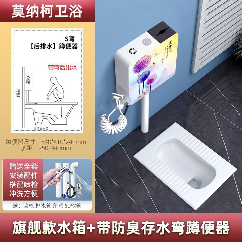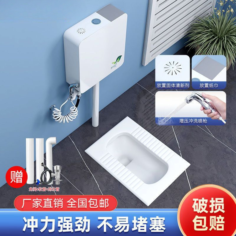 새로운 화장실 쪼그리고 앉는 팬 플러싱 탱크 세트 화장실 탈취제 트랩 쪼그리고 구덩이 작은 아파트스토어 가기