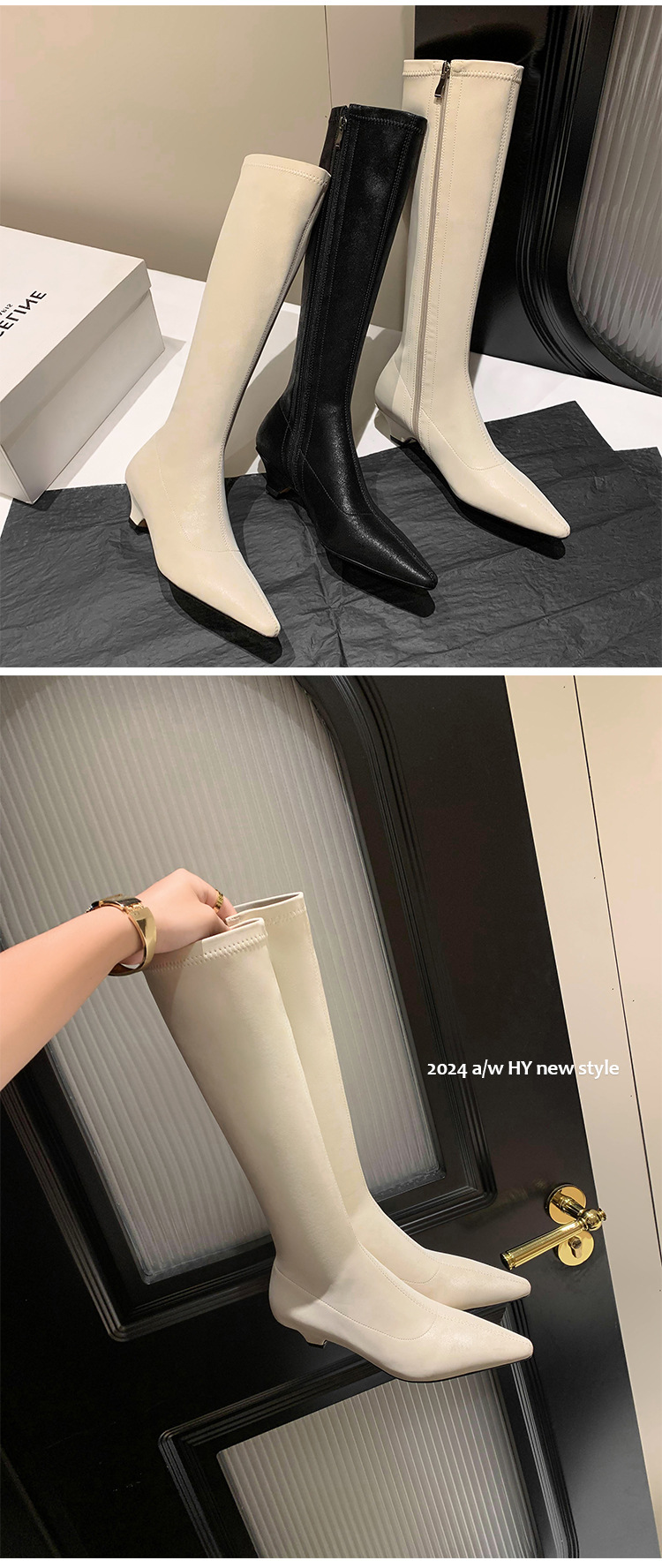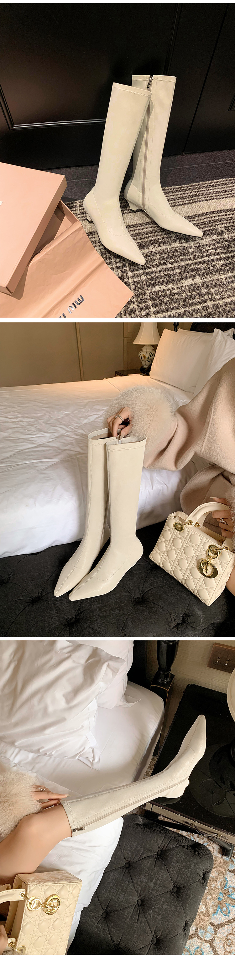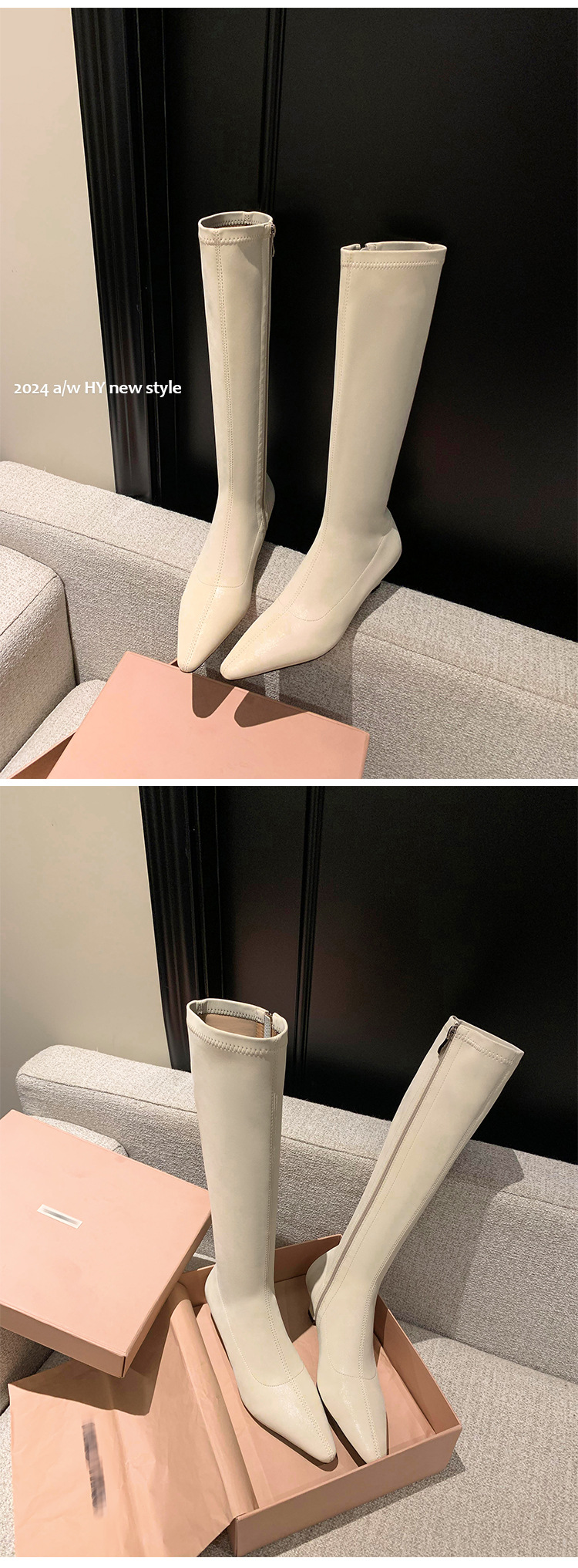 우아한 뾰족한 새끼 고양이 굽 높은 기사 부츠 스트레치 얇은 부츠 플러스 사이즈 있지만 무릎 한국 스타일 화이트 롱 부츠 여성스토어 가기