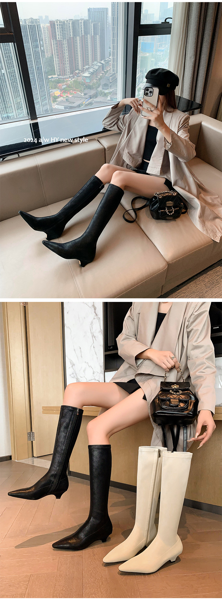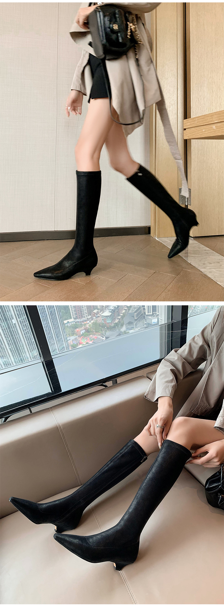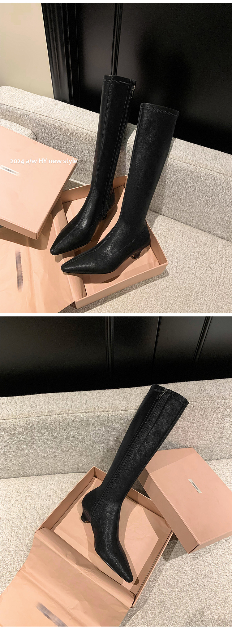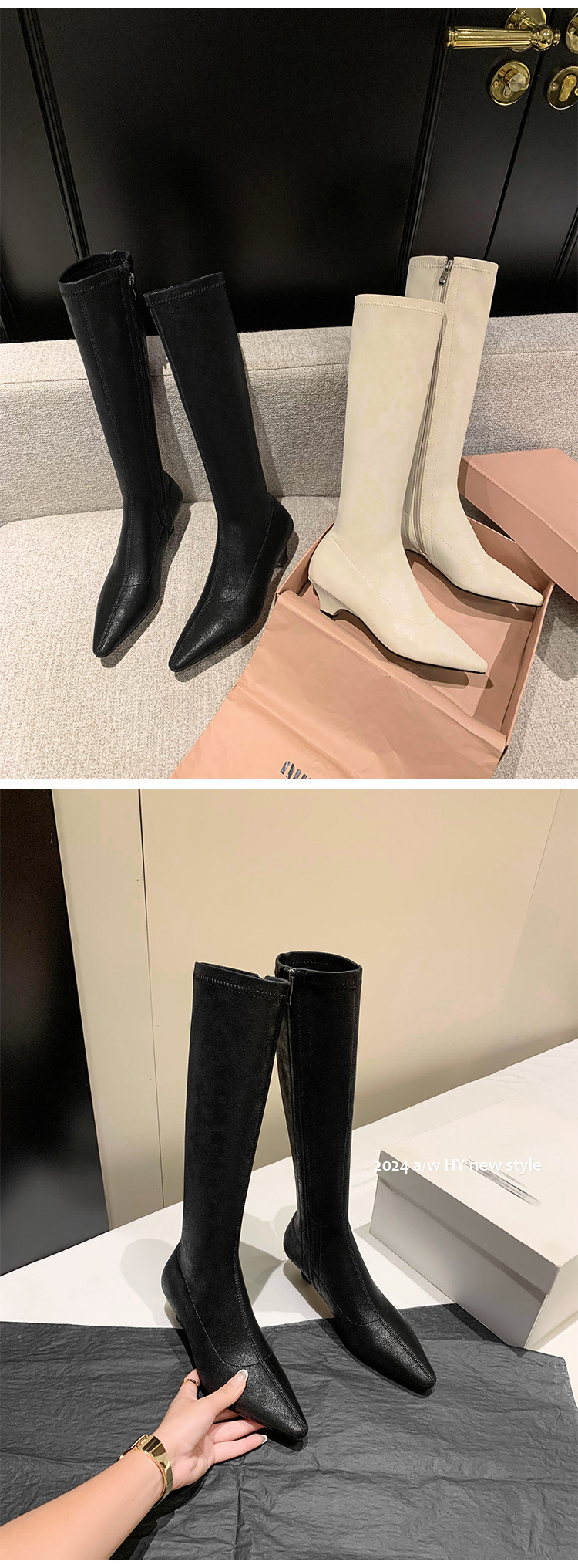 우아한 뾰족한 새끼 고양이 굽 높은 기사 부츠 스트레치 얇은 부츠 플러스 사이즈 있지만 무릎 한국 스타일 화이트 롱 부츠 여성스토어 가기