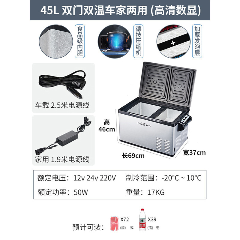 • 45L 순수 자동차(이중 도어 이중 온도 + 냉동 및 냉장 파티션 + 충격 방지 및 미끄럼 방지)