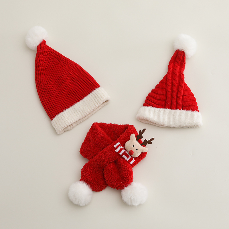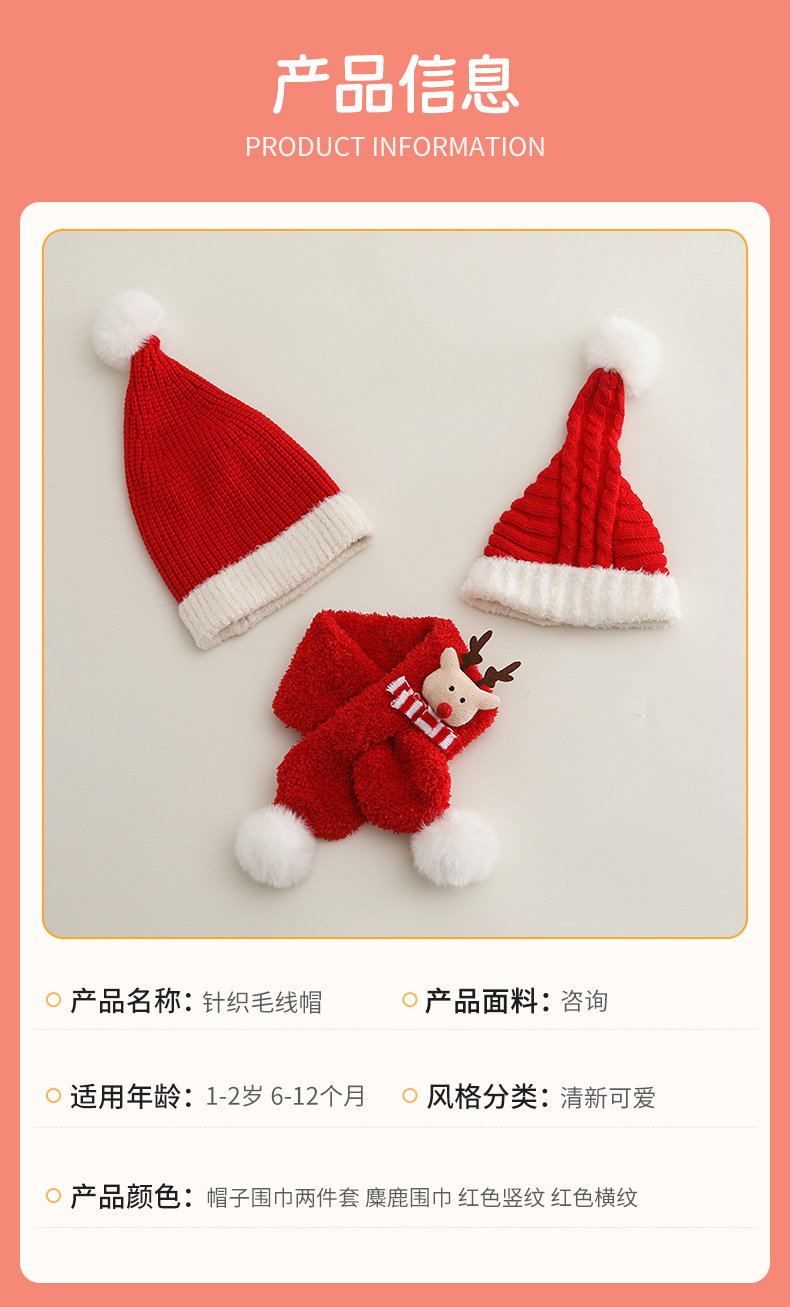 겨울 새로운 귀여운 어린이 모자 새해 붉은 Ins Fawn 스카프 크리스마스 모자 아기 니트 양모 모자