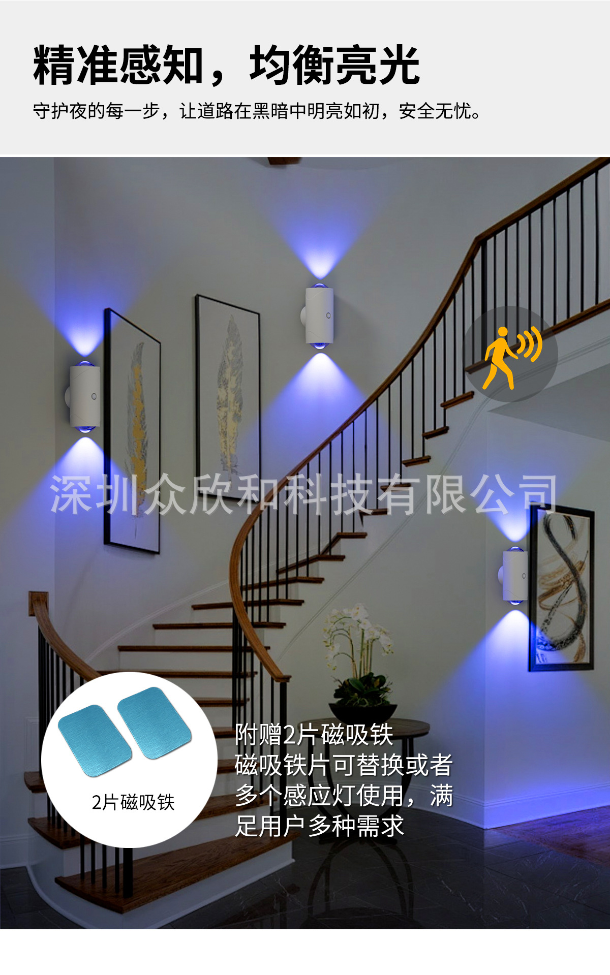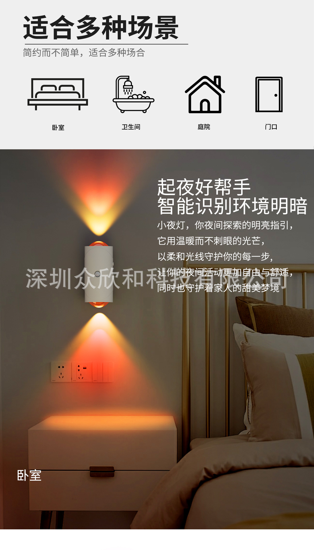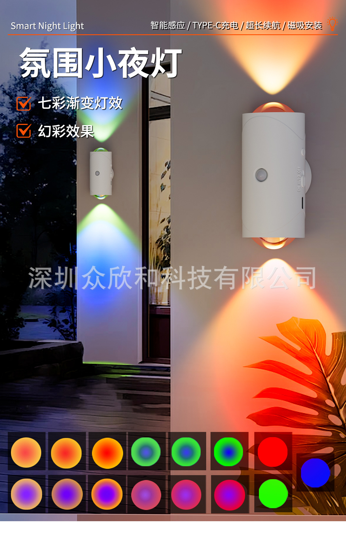 국경 간 다채로운 그라데이션 분위기 야간 조명 지능형 인체 유도 자기 충전식 다채로운 벽 조명 홈 조명스토어 가기