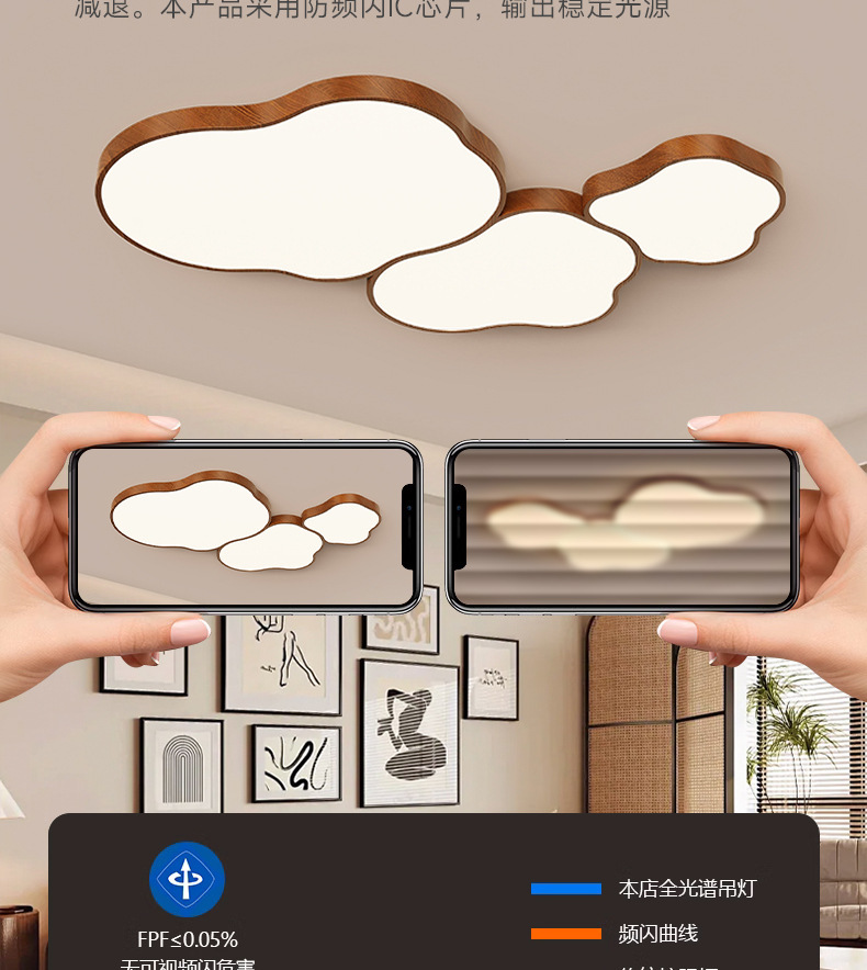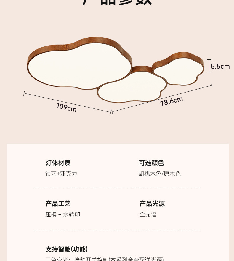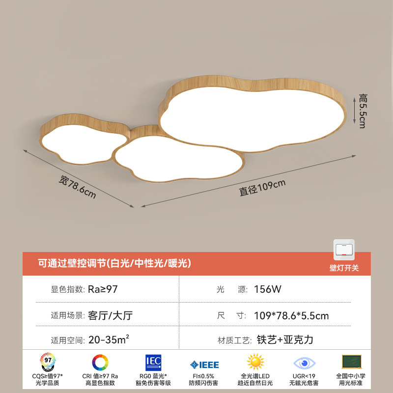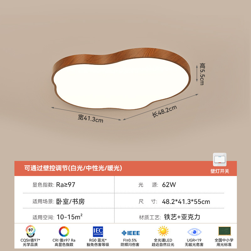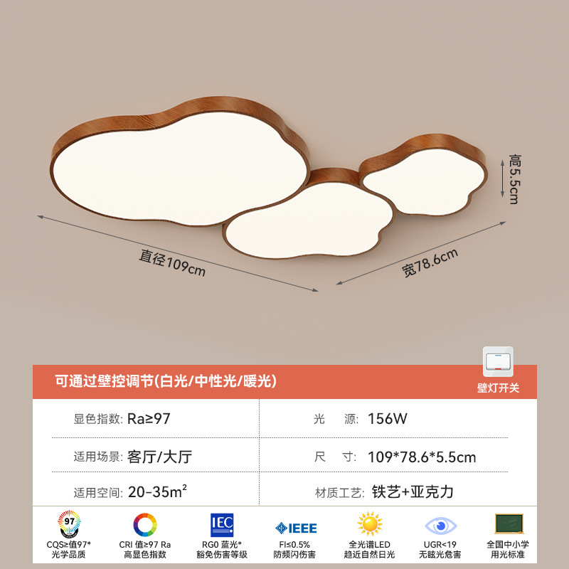 전체 스펙트럼 중간 스타일 거실 메인 라이트 호두 컬러 새로운 스타일 대기 천장 라이트 침실 룸 라이트 아이 보호 램프