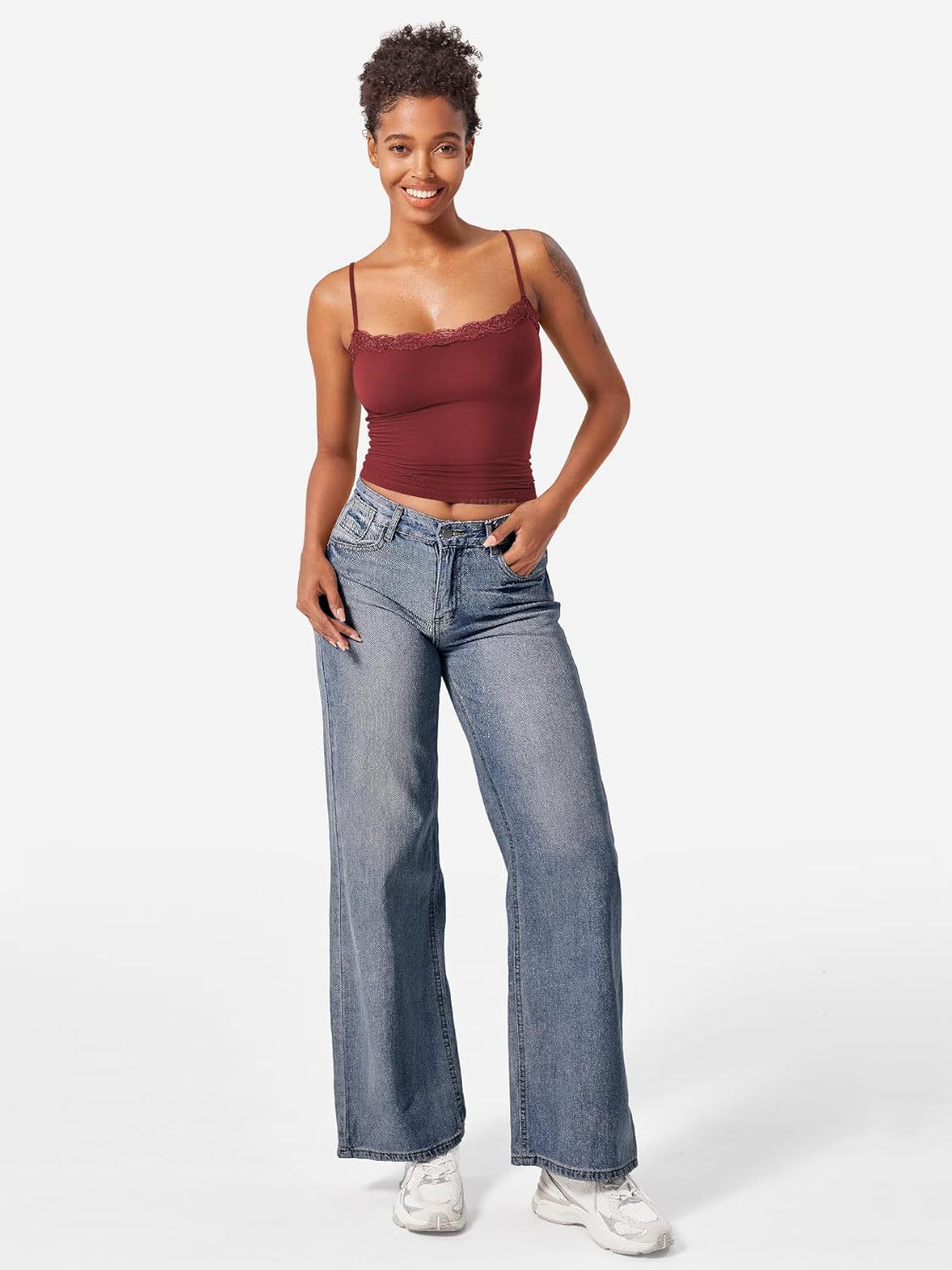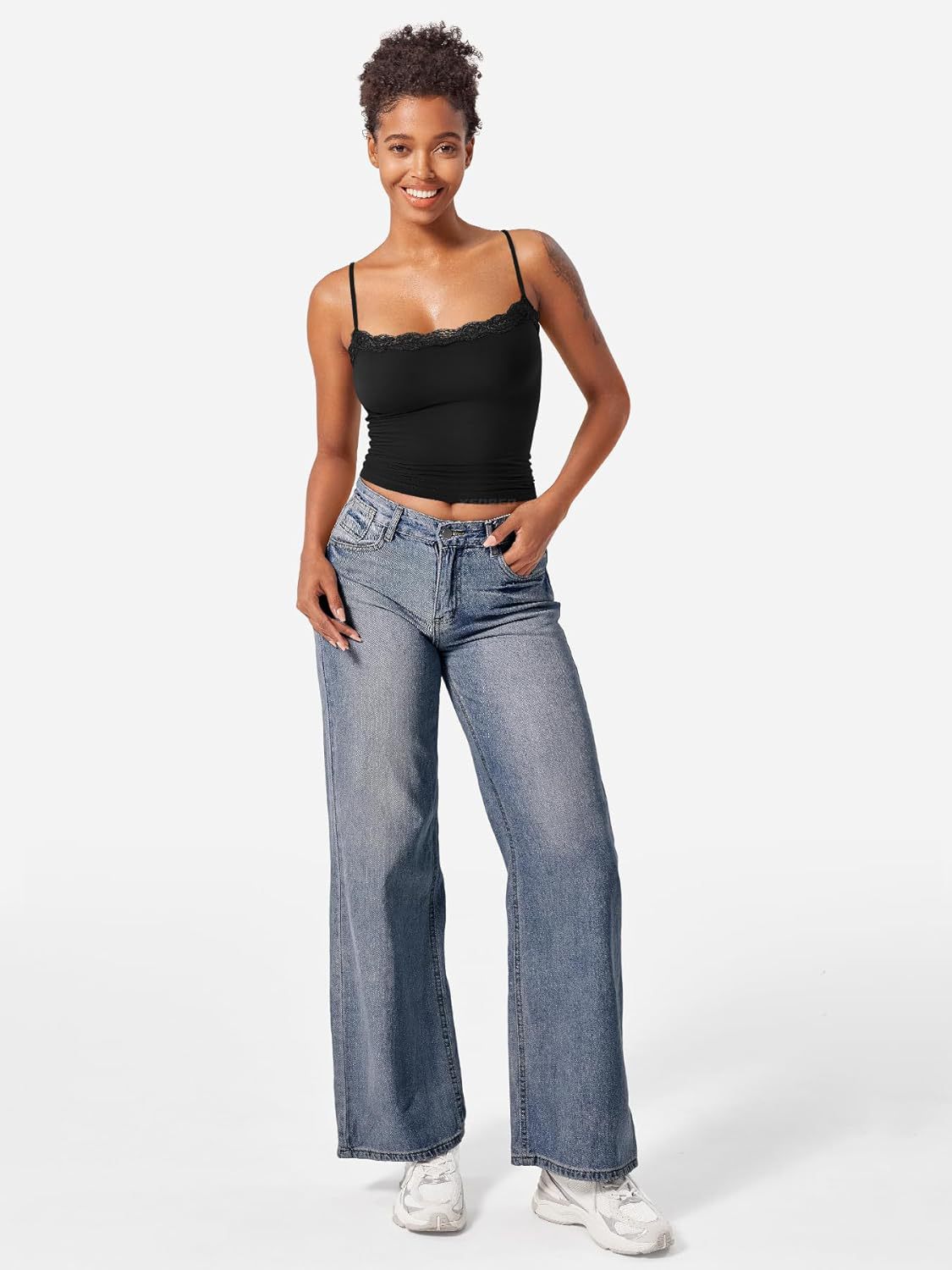 아마존 2025 여성 레이스 카미솔 스퀘어 칼라 섹시한 조끼 민소매 벨트 기본 탑 의류스토어 가기