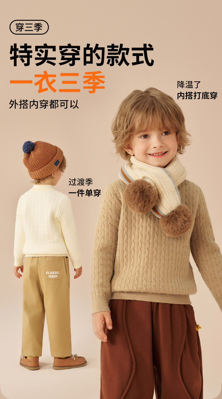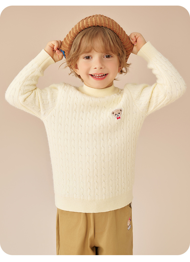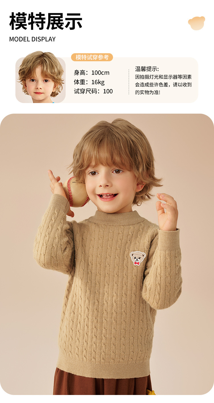클래식 테디 남아 니트 스웨터 어린이용 스웨터 봄 신상 단색 여아 스웨터 라운드넥 상의 중대형 어린이용스토어 가기
