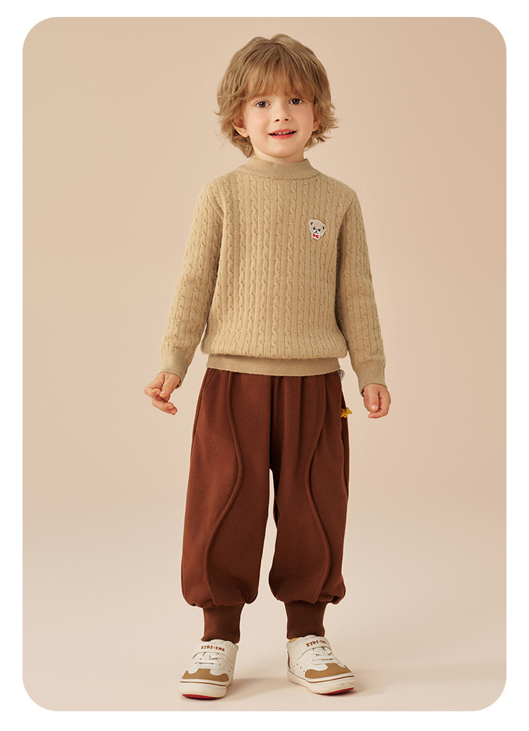클래식 테디 남아 니트 스웨터 어린이용 스웨터 봄 신상 단색 여아 스웨터 라운드넥 상의 중대형 어린이용