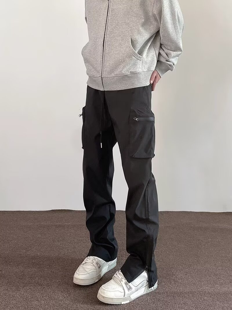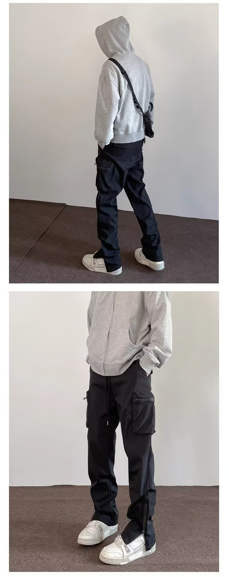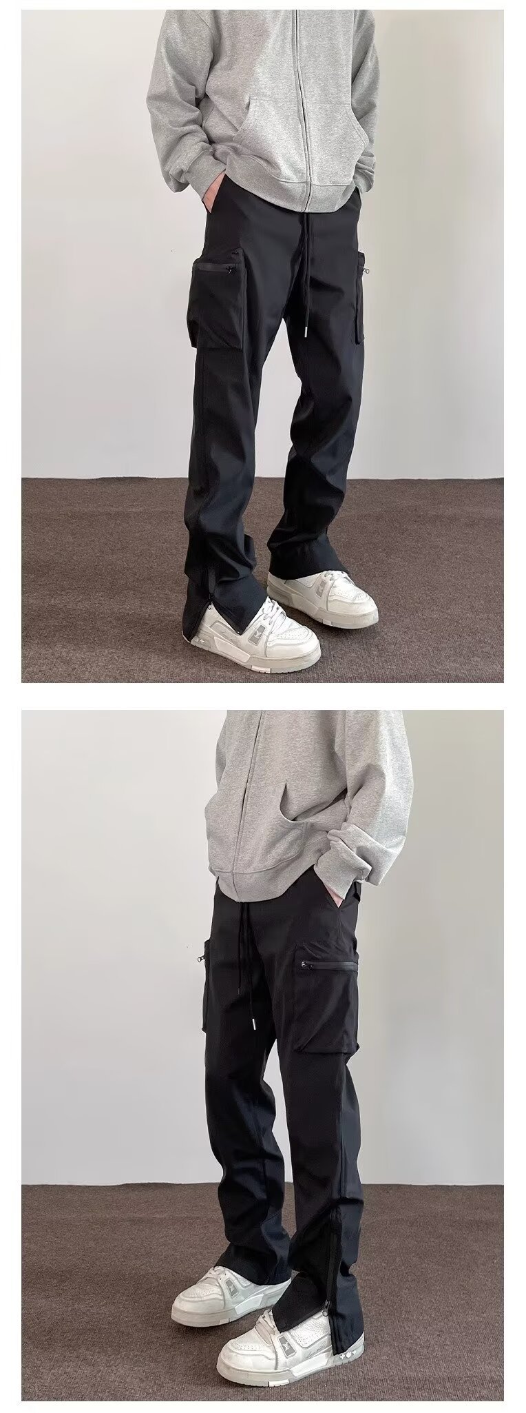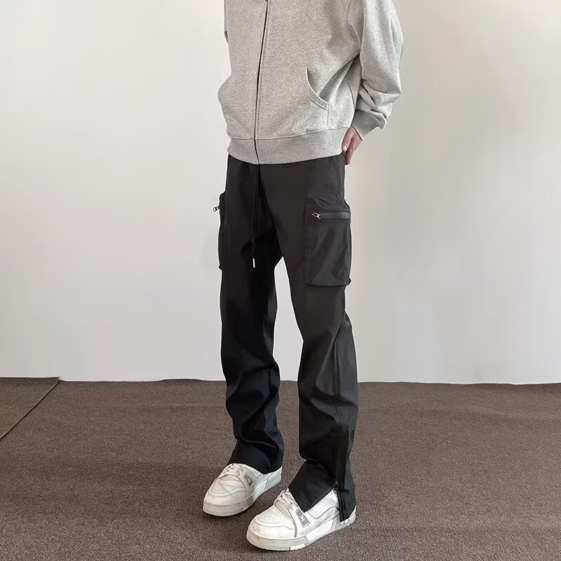 아메리칸 스타일 하이 스트리트 바이브 지퍼 분할 작업복 캐주얼 바지 남성용 트렌디 브랜드 스트레이트 마이크로 튜브 기능성 올 매치 롱 바지스토어 가기