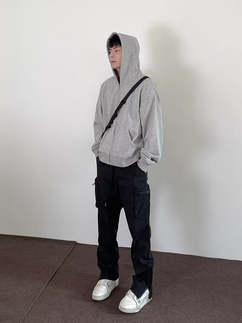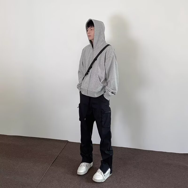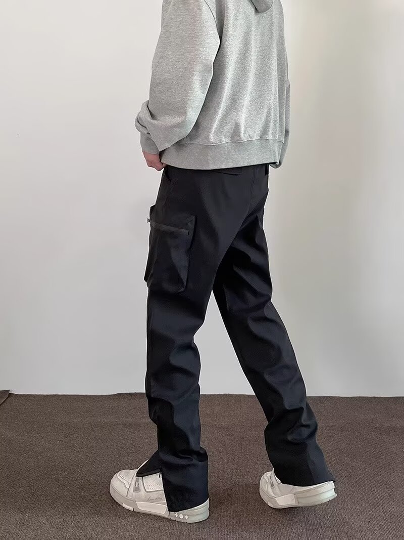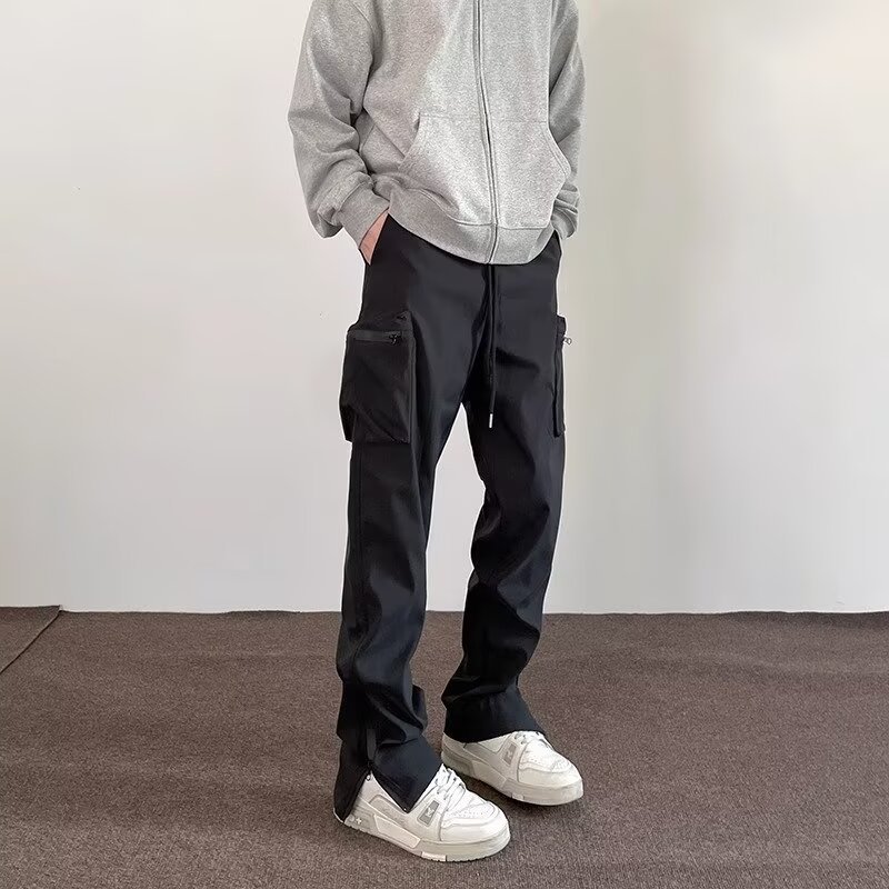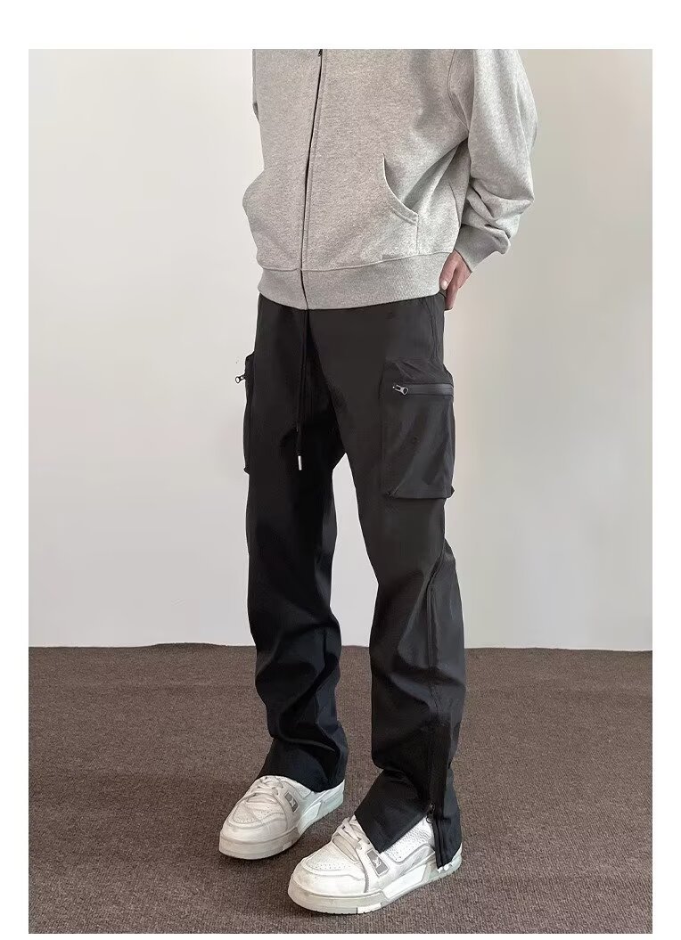 아메리칸 스타일 하이 스트리트 바이브 지퍼 분할 작업복 캐주얼 바지 남성용 트렌디 브랜드 스트레이트 마이크로 튜브 기능성 올 매치 롱 바지스토어 가기