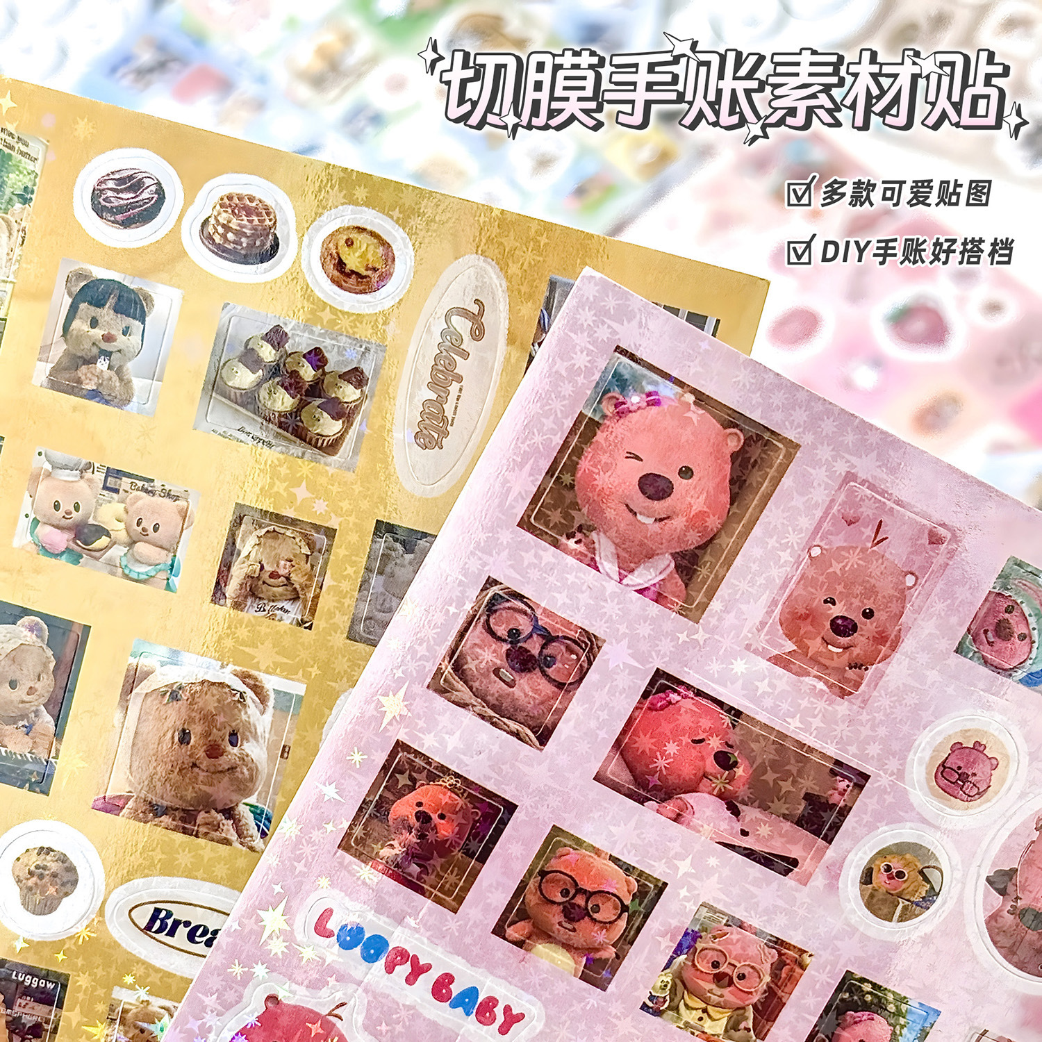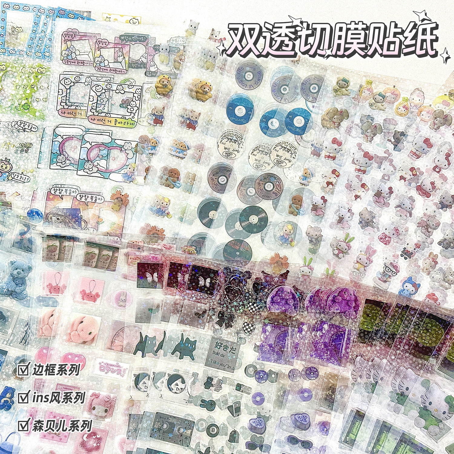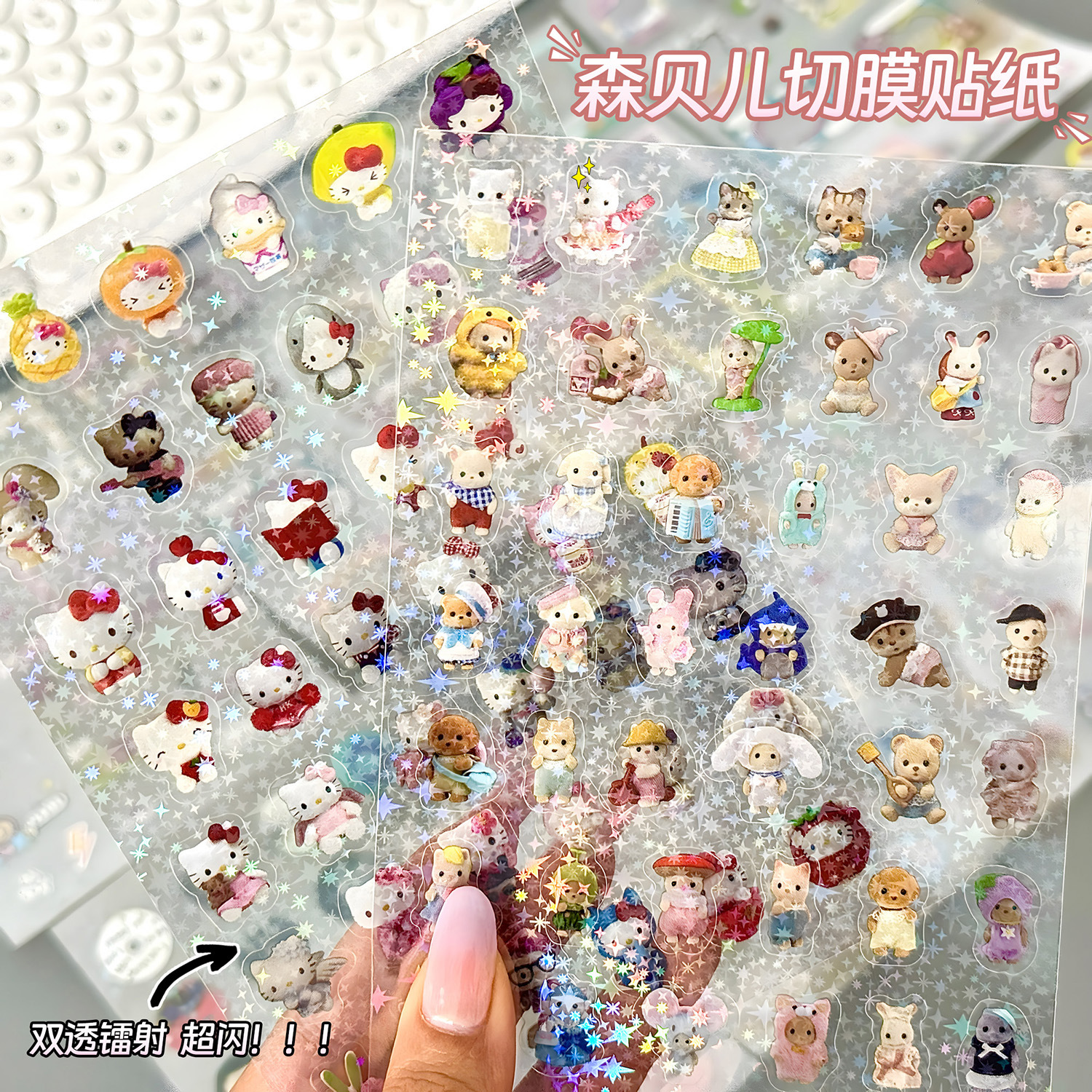 높은 컬러 값 필름 절단 스티커 더블 투명 레이저 스타 손 계정 패리티 소재 장식 고대 아침 스티커 작은 빨간 책 같은 단락스토어 가기