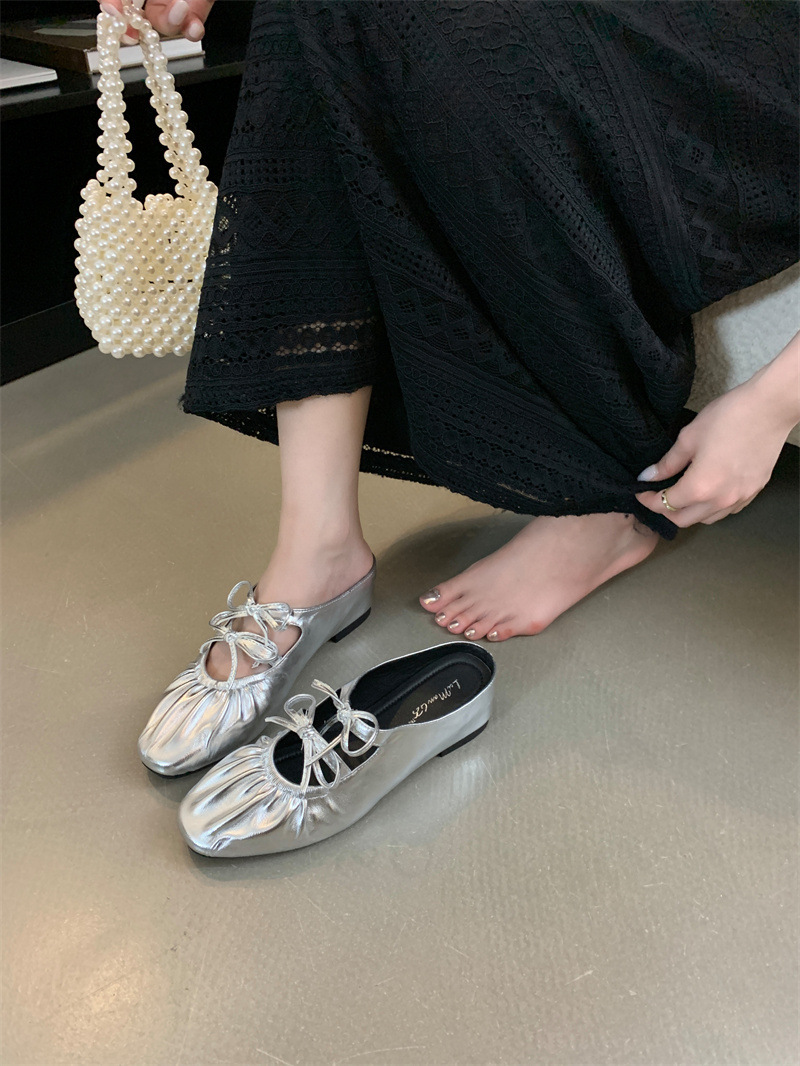 내부 강화 Baotou 하프 슬리퍼 여성용 여름 아우터 실버 샌들 프랑스 우아한 요정 스타일 싱글 레이어 신발스토어 가기