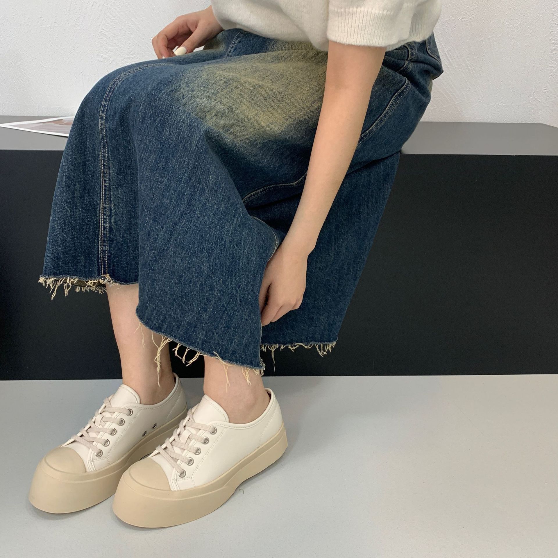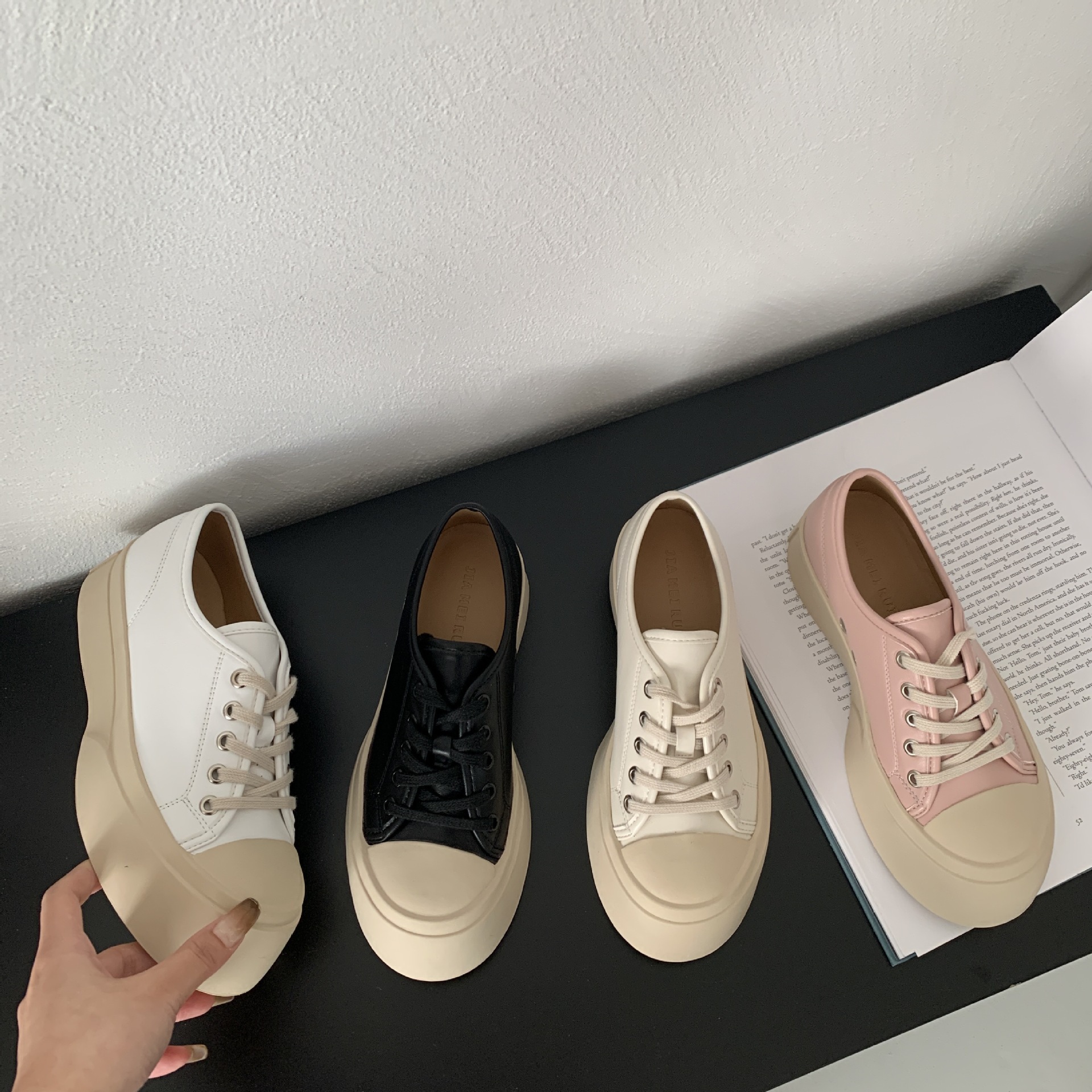 2025 여름 새로운 두꺼운 단독 신발 큰 발가락 인형 플랫폼 단독 레이스 업 화이트 신발 캔버스 신발 여성용
