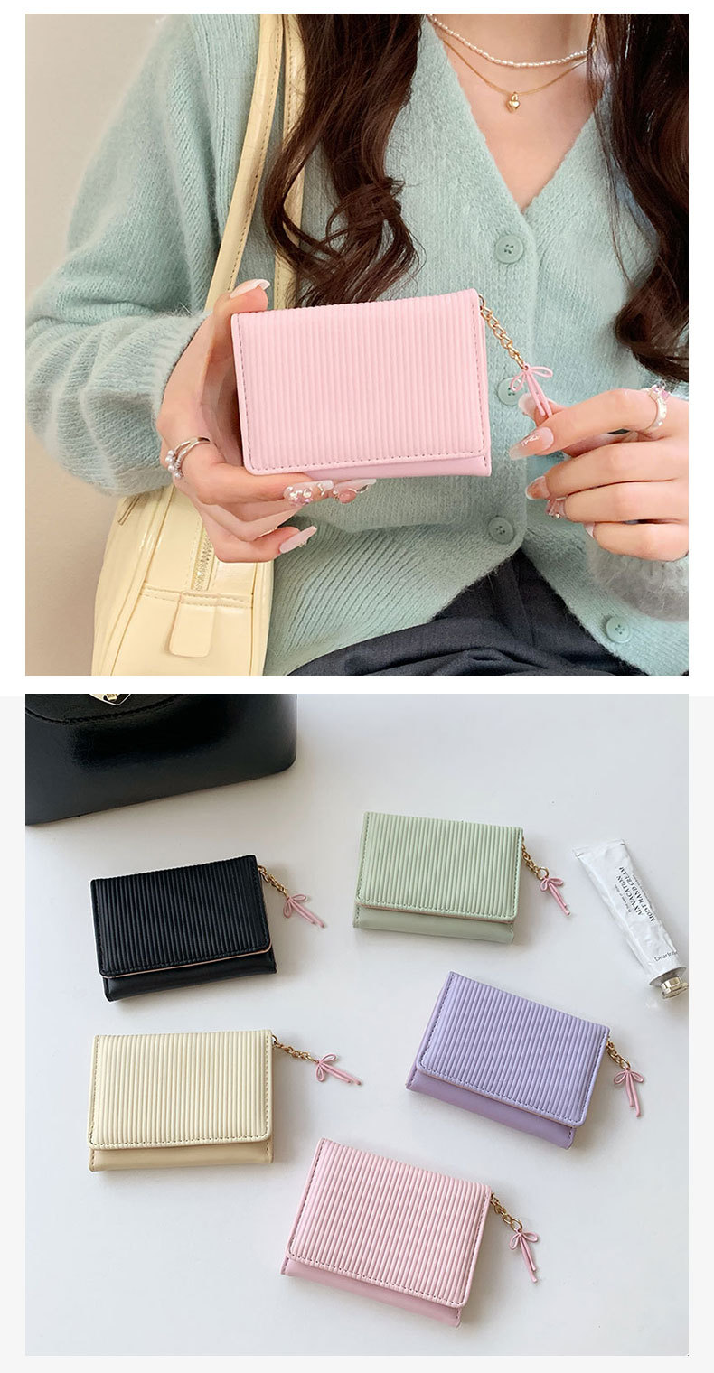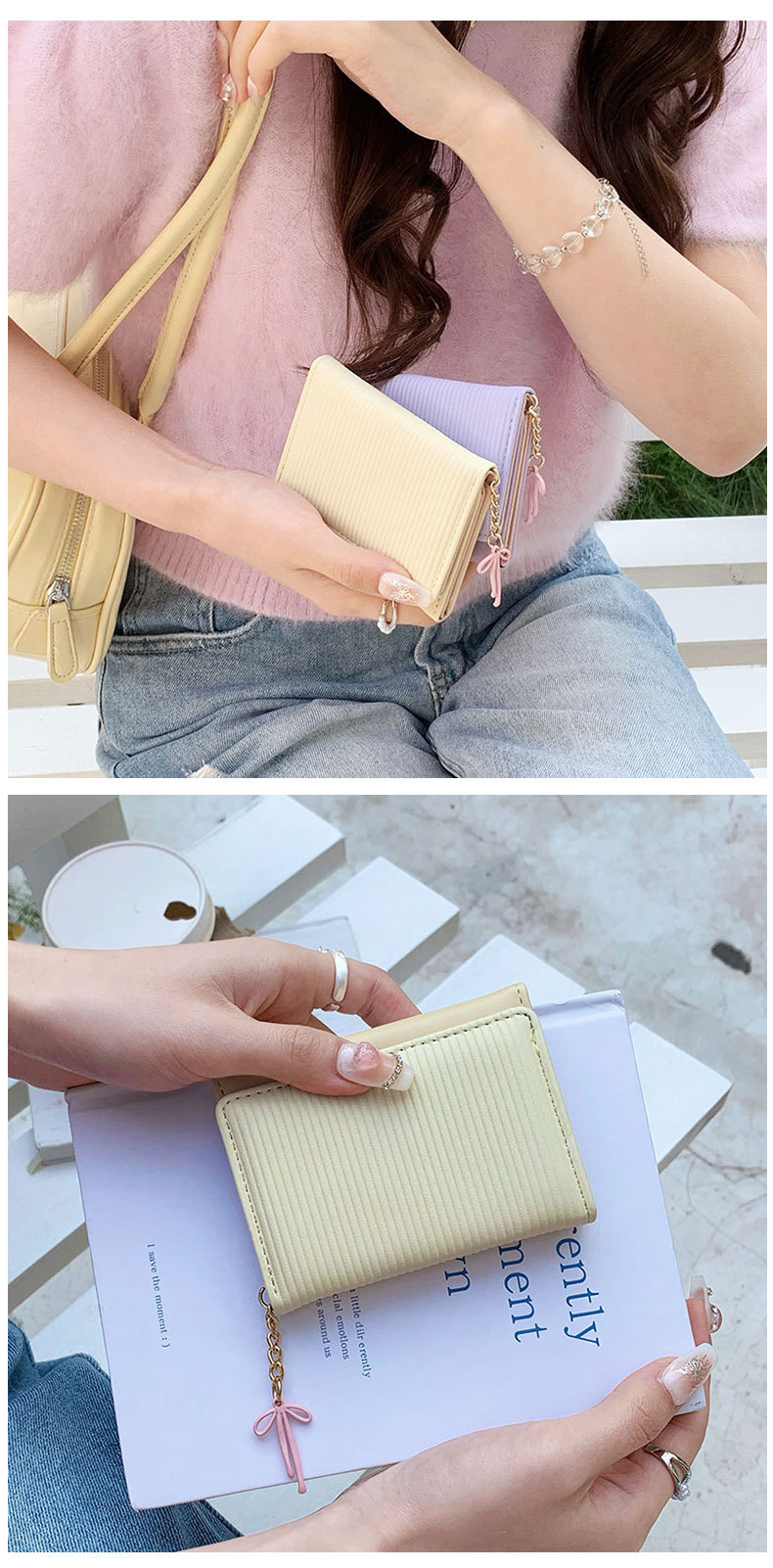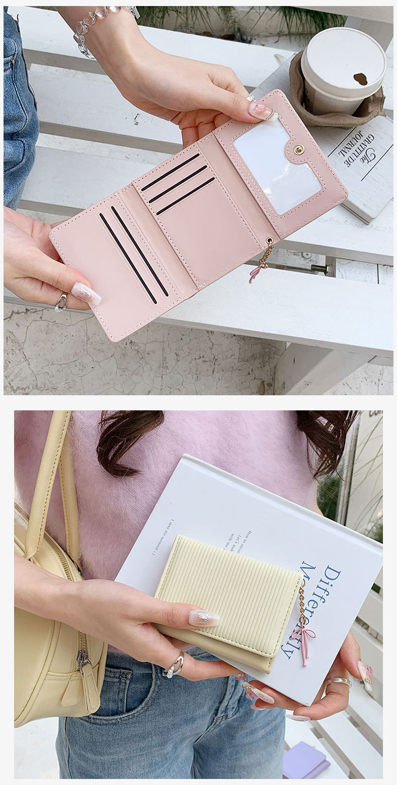 일본과 한국의 귀여운 짧은 여성용 지갑 카드 홀더 올인원 다목적 기능 고급 70% off 보우 가죽 지갑스토어 가기